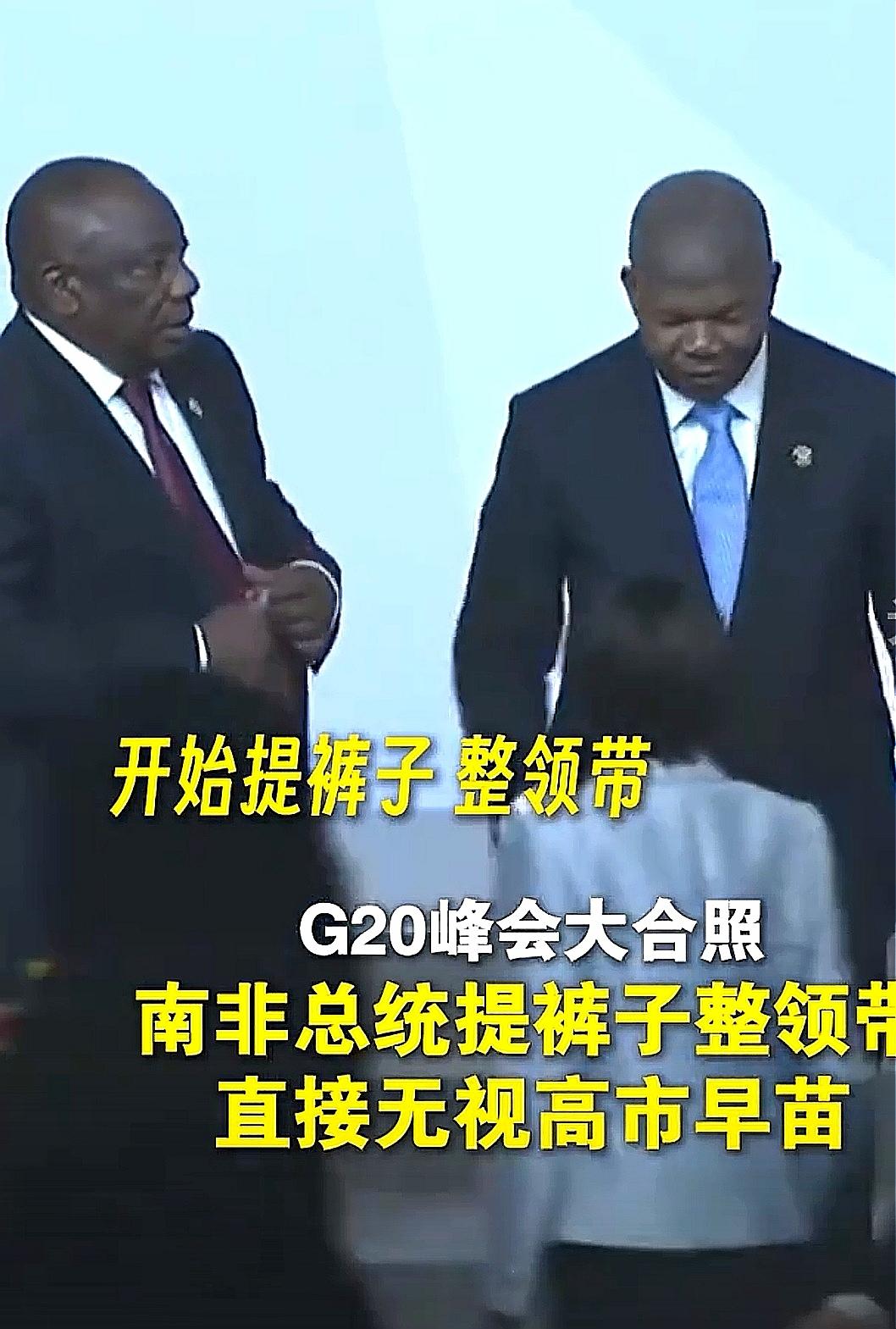 提腰带,系领带,“以礼相待”。 个别人对南非总统这一举动表示质疑,说他见到女首相不打招呼也就罢了,居然还提腰带系领带,有失外交礼仪。 任何事都有个前因后果,单凭一个镜头提出评判显然有失公允。 本次峰会举办国在南非,作为东道主,没有特殊原因是不可能有如此举动的。 问题还是出在高氏身上,这位女首相,在峰会期间姗姗来迟,晚到了一个小时,进会场时正巧东道主在发言,这事儿搁谁身上也不舒服,所以她受到东道主的无视,算的上“以礼相待”了。