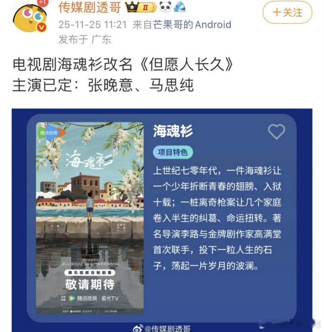 但愿人长久的故事简介和海魂衫两模两样啊,很明显不是一部剧啊,总不能悬疑爆改爱情片吧