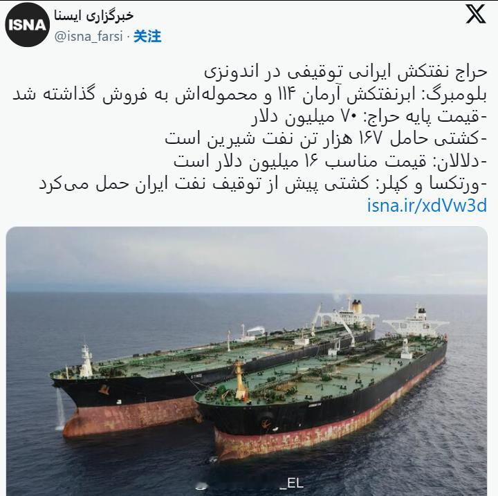 印度尼西亚政府对其2023年扣押的伊朗油轮“阿曼114”号(根据美国对伊朗的制裁政策)连同船上搭载的120万桶原油打包拍卖,定价7000万美元,不过媒体认为这个价格偏高,实际价值不超过1600万美元。