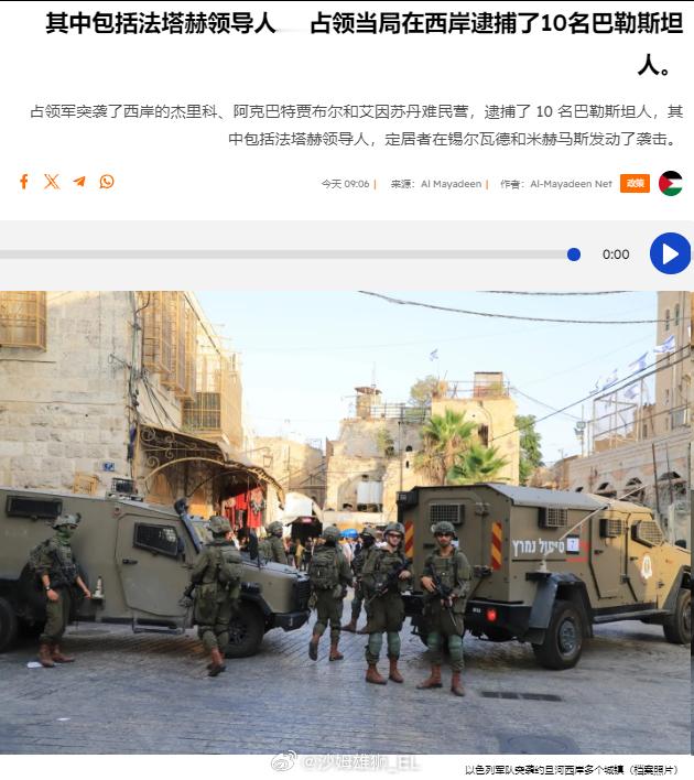 以色列占领军扫荡了巴勒斯坦约旦河西岸地区的杰里科、阿克巴特贾布尔和艾因苏丹难民营,绑架10人,其中包括“法塔赫”运动的杰里科省书记纳伊勒·阿布·阿萨尔和阿卡巴特·贾布尔难民营区书记纳赛尔·阿布·达胡克。