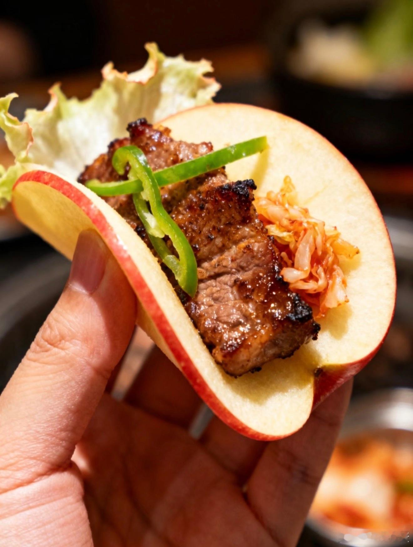 你们一到冬天,吃商这么高吗?一口下去,又甜又香还不腻!等下次吃烤肉的时候,高低带个苹果试试了