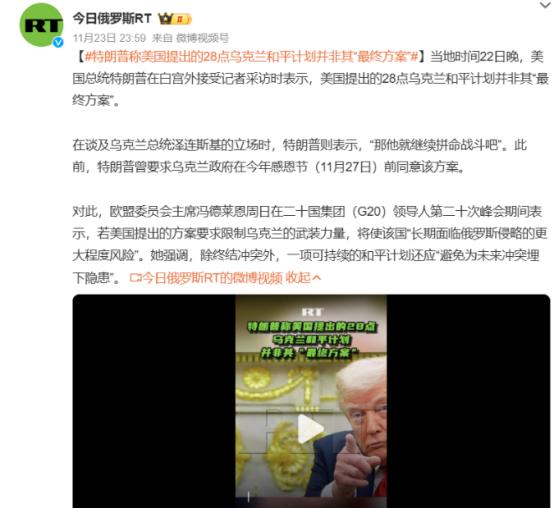 当地时间11月23日,俄卫星通讯社,川普22日下午:美国提出的28点和平计划并非其“最终方案”;美国将继续向北约出售大批武器以便转交乌;若泽连斯基拒签协议,那他就继续拼命战斗吧 谁能想到美国对俄乌冲突的态度说变就变,前阵子还拿着一份28点和平计划到处吹风,搞得外界都以为他们要牵头推动停火谈判了,结果转头就换了副面孔,连话都放得硬邦邦的。 当地时间11月22日下午,俄卫星通讯社就爆出了川普的最新表态,说美国之前抛出来的那28点和平计划根本不是什么“最终方案”,一边说着和平,一边却要继续向北约出售大批武器,再让北约转交给乌克兰。 更直白的话还在后头:要是泽连斯基不乐意签协议,那他就自己接着拼命战斗吧。这话里的意思明明白白,要么听美国的安排坐下来谈,要么就自己想办法扛着,美国的援助能不能续上,全看乌克兰乖不乖。 这话一放出来,不少人都看懵了,毕竟前阵子美国刚拿出和平计划的时候,连欧洲盟友都跟着动了心。要知道打了这么多年,不管是美国还是欧洲,早就有点扛不住了。 美国光援助乌克兰就砸了几百亿美元,国内不少人都抱怨钱花在外国战场不值当;欧洲更惨,能源价格涨得离谱,难民问题没断过,自家经济都快被拖垮了,早就盼着能有个停火的机会喘口气。所以之前美国提和平计划,欧洲那边响应得挺积极,连乌克兰都没敢直接反对,怎么突然就又要卖武器、放狠话了? 更有意思的是美国内部的表态还不一样,就在川普抱怨乌克兰领导层对美方的努力毫无感激之情的时候,另一位美国政客鲁比奥却站出来说,相关的会谈“富有成效”。 这一冷一热的说法,其实藏着美国的小算盘。川普的狠话明显是说给泽连斯基听的,就是要逼乌克兰在谈判桌上让步;而鲁比奥的话则是说给欧洲盟友和国内看的,意思是事情还在掌控中,和平谈判的架子没倒,只是得按美国的节奏来。 毕竟要是真把乌克兰逼急了,泽连斯基硬顶着不谈判,美国要么就得继续砸钱援助,要么就得接受俄乌冲突一直拖下去的烂摊子,这两种结果都不是美国想看到的。 欧洲那边的反应更能说明问题,他们早就摸透了美国的心思,也有自己的小九九。 这话里的潜台词很清楚,欧洲已经不想再陪着乌克兰硬耗了,只想尽快把战线固定下来,然后让美国兜底,自己好抽身。 欧洲的这些想法,其实也代表了乌克兰的部分诉求,但泽连斯基政府肯定不甘心就这么按接触线划分领土,毕竟不少土地还在俄罗斯手里。所以就在美国放话、欧洲表态之后,乌克兰和欧洲盟友一起,在11月23日晚些时候于瑞士给美国提交了一份反提案。 这份提案里说得很明确,不是不能谈,但得先满足一个前提:战事必须沿着当前的接触线停下来,之后才能和俄罗斯就任何领土交换展开讨论。这等于是把球又踢回给了美国和俄罗斯,既回应了欧洲想固定战线的需求,又没直接答应美国可能提出的让步要求,算是给自家留了点面子。 其实美国这次立场反转,看着突然,仔细想想全是算计。前阵子抛和平计划,是因为美国和欧洲的“援乌疲劳症”越来越严重,再砸钱下去国内交代不过去,也怕欧洲盟友先扛不住倒戈。 但真要谈的时候,美国又不想让俄罗斯占太多便宜,更不想让乌克兰彻底倒向欧洲或者其他势力,所以就得用“打谈结合”的办法拿捏各方。一边说要谈判,给各方一个盼头。 一边又卖武器,给乌克兰壮胆,也给俄罗斯施压;同时还放狠话逼乌克兰让步,怕泽连斯基狮子大开口,搅黄了谈判。说白了,美国就是想当这个“和事佬”,但规矩得按美国的来,好处也得美国先占。 泽连斯基心里也清楚自己的处境,他要是真不听美国的,一旦美国断了援助,乌克兰的军队根本撑不了多久。之前乌克兰前外长就说过,要是美国停止供武,可能直接摧毁乌克兰。 但他也不能随便签协议割地,不然国内老百姓不答应,自己的总统位置也坐不稳。所以乌克兰才拉着欧洲盟友一起提反提案,把“停火再谈领土”作为前提,既给了美国谈判的台阶,又保住了自己的底线,还能借欧洲的力量给美国施压,毕竟欧洲也不想战事再扩大。 现在各方的心思都摆到台面上了:美国想靠“打谈两手”掌控局势,既不想耗太久,又不想输面子;欧洲想尽快停火止损,还得让美国兜底;乌克兰想保住更多领土,又不敢得罪美国。 俄罗斯那边虽然没直接表态,但之前普京已经放话,要是西方继续加码援助,俄罗斯会有强硬回应,甚至会打击“基辅决策中心”。这么多利益牵扯在里面,和平谈判肯定不会顺利。 说来说去,美国这次立场反转,根本不是真的想放弃和平,也不是非要把乌克兰推到死路上,就是一场精准的“压力测试”。通过放狠话、卖武器、提条件,看看乌克兰到底能让多少步,俄罗斯会不会松口,欧洲能配合到什么程度。