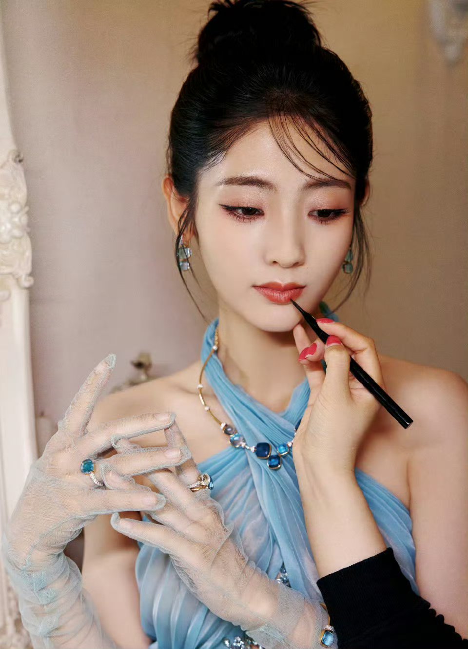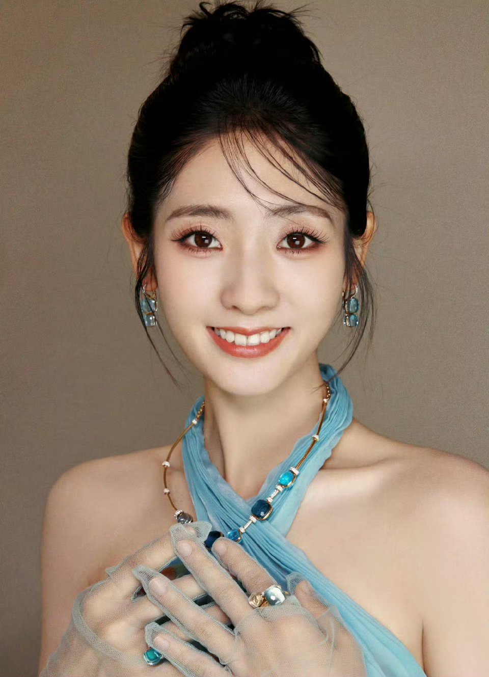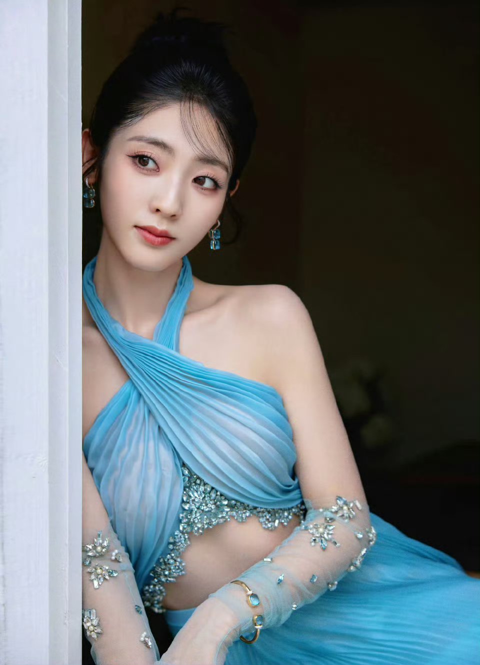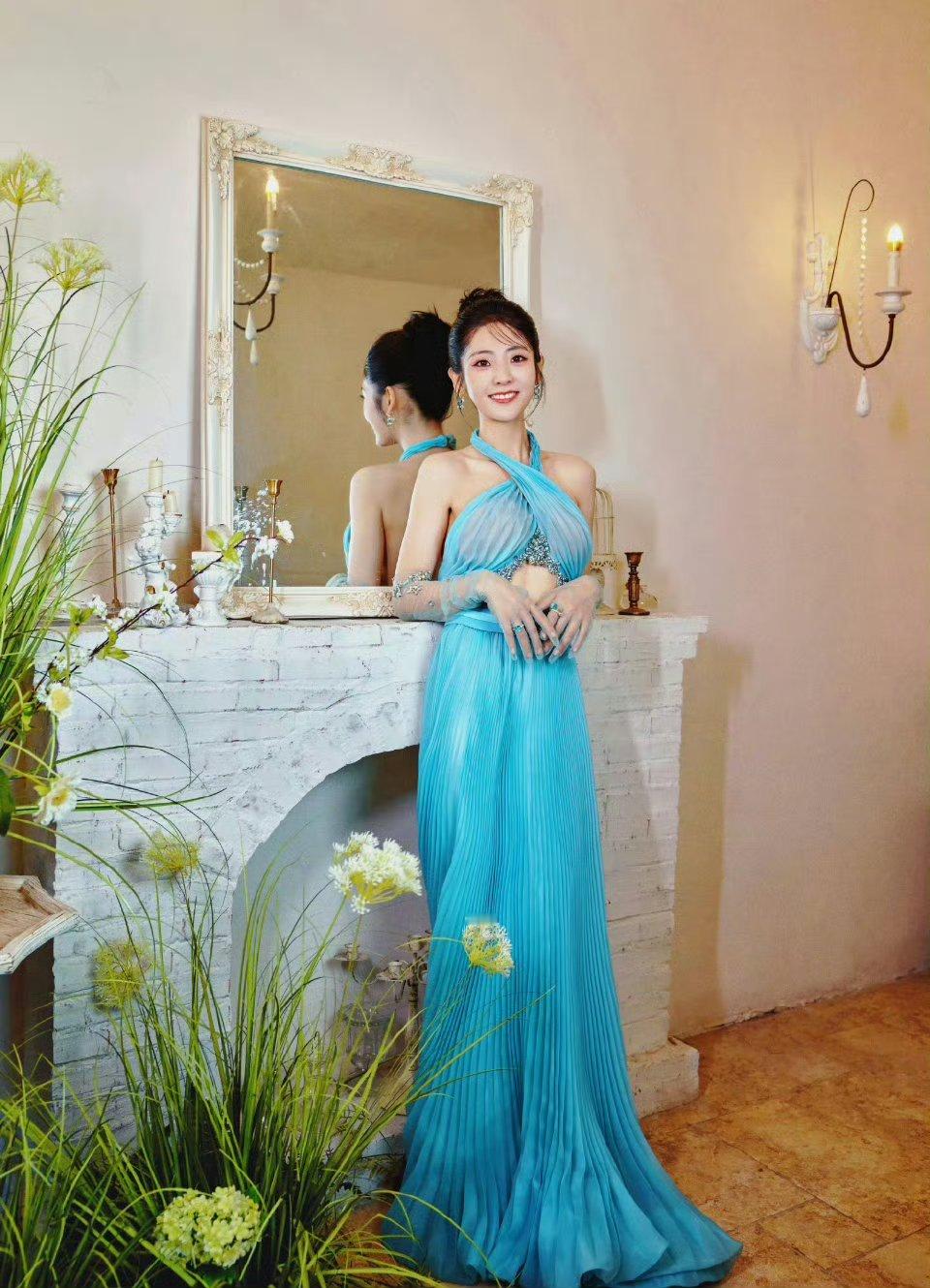 邢菲蓝色挂脖大露背裙身材太棒了~~