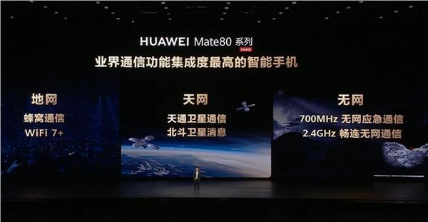 华为Mate 80系列通信地表最强余承东表示,华为Mate 80系列是业界通信功能集成度最高的智能手机,支持地网、天网、无网“三网”通信,通信地表最强。