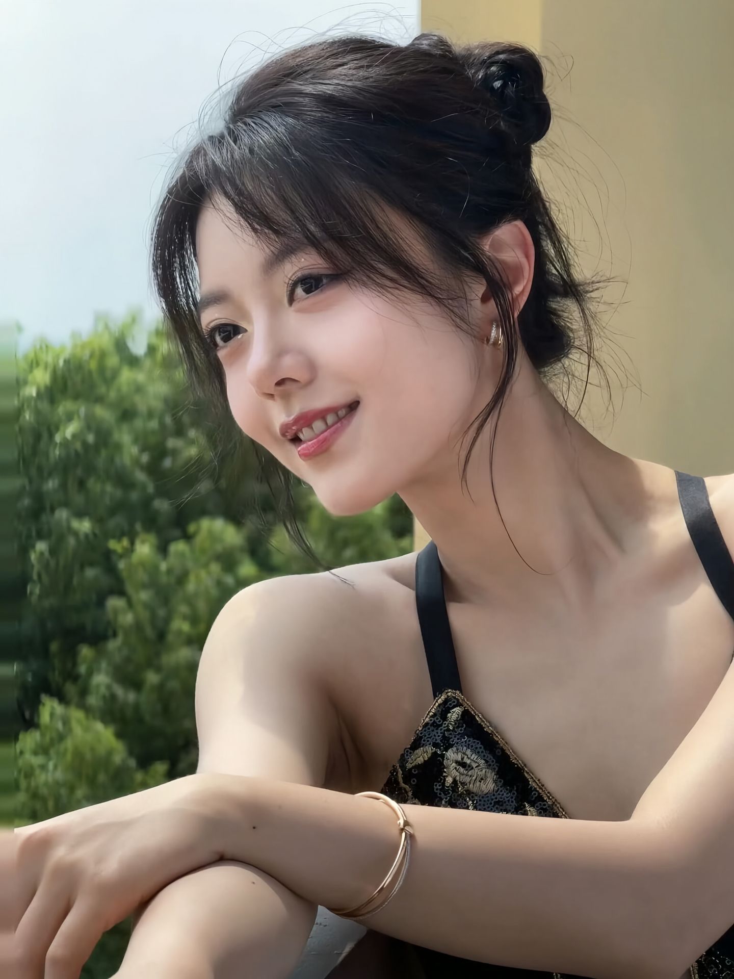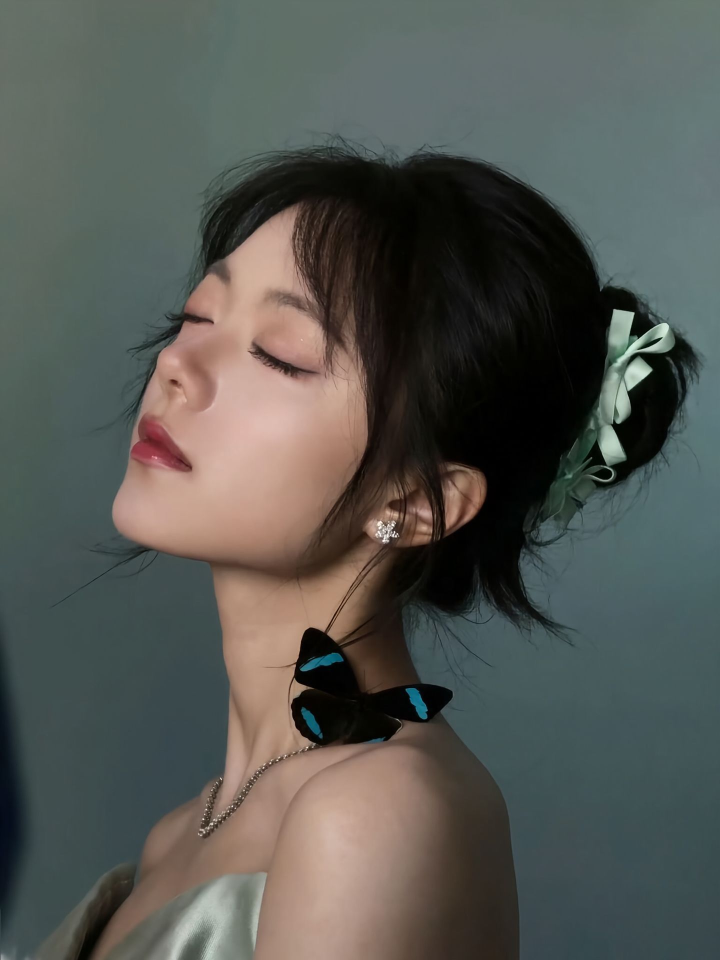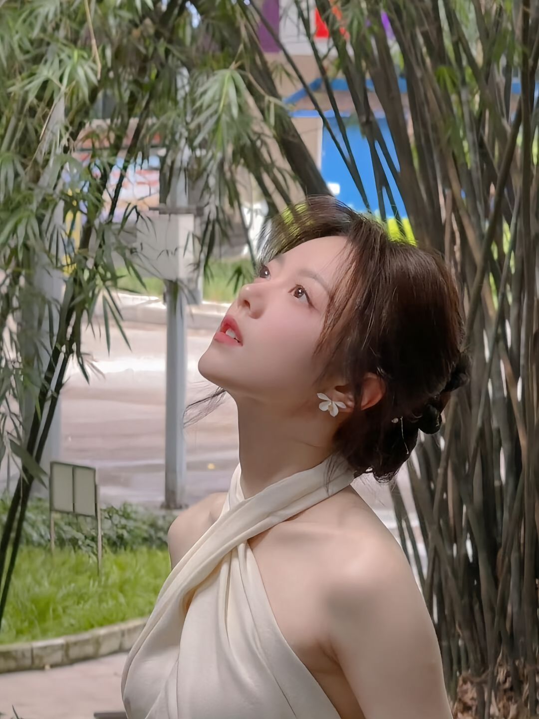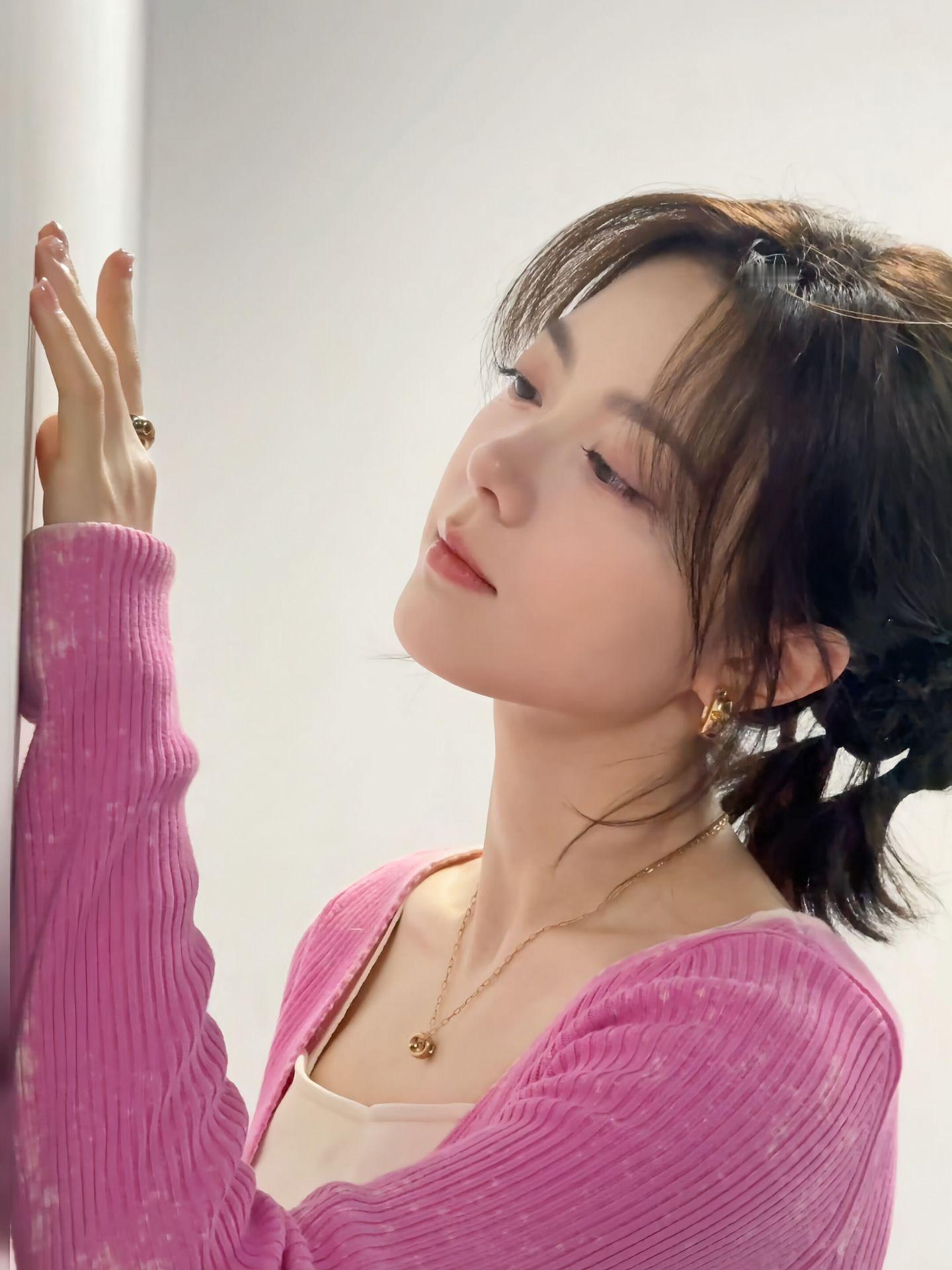 慵懒的低盘发配上温柔的微笑,赵今麦 松弛又迷人