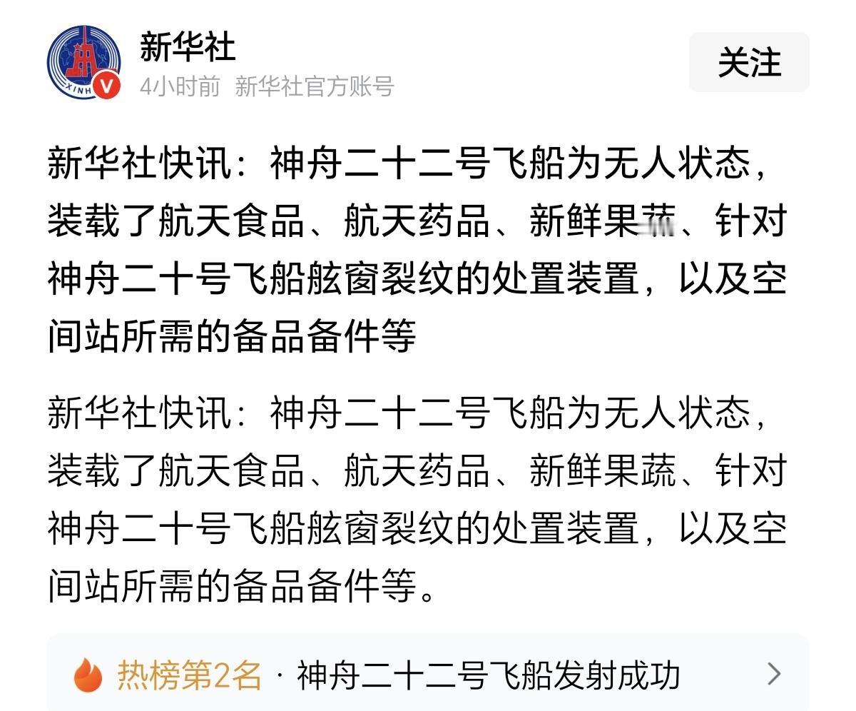 从神舟二十号发生太空碎片撞击,到神舟二十一号接航天员回家,再到神舟二十二搭载各类物资、备品备件等,顺利发射,前后也就二十来天时间。这处理突发事件的应急响应速度,非常快,甚至超出了许多人的预期。而且这次出现的应急事件,也为神舟二十二无人飞船升空,创造了相应事件处置的经验。而且搭载神舟二十号飞船舷窗裂纹处置装置,更是一次太空维修的经验。