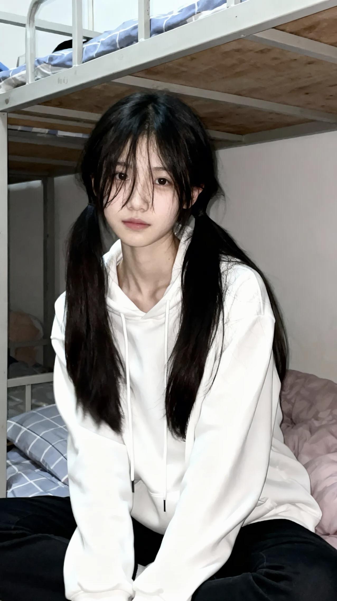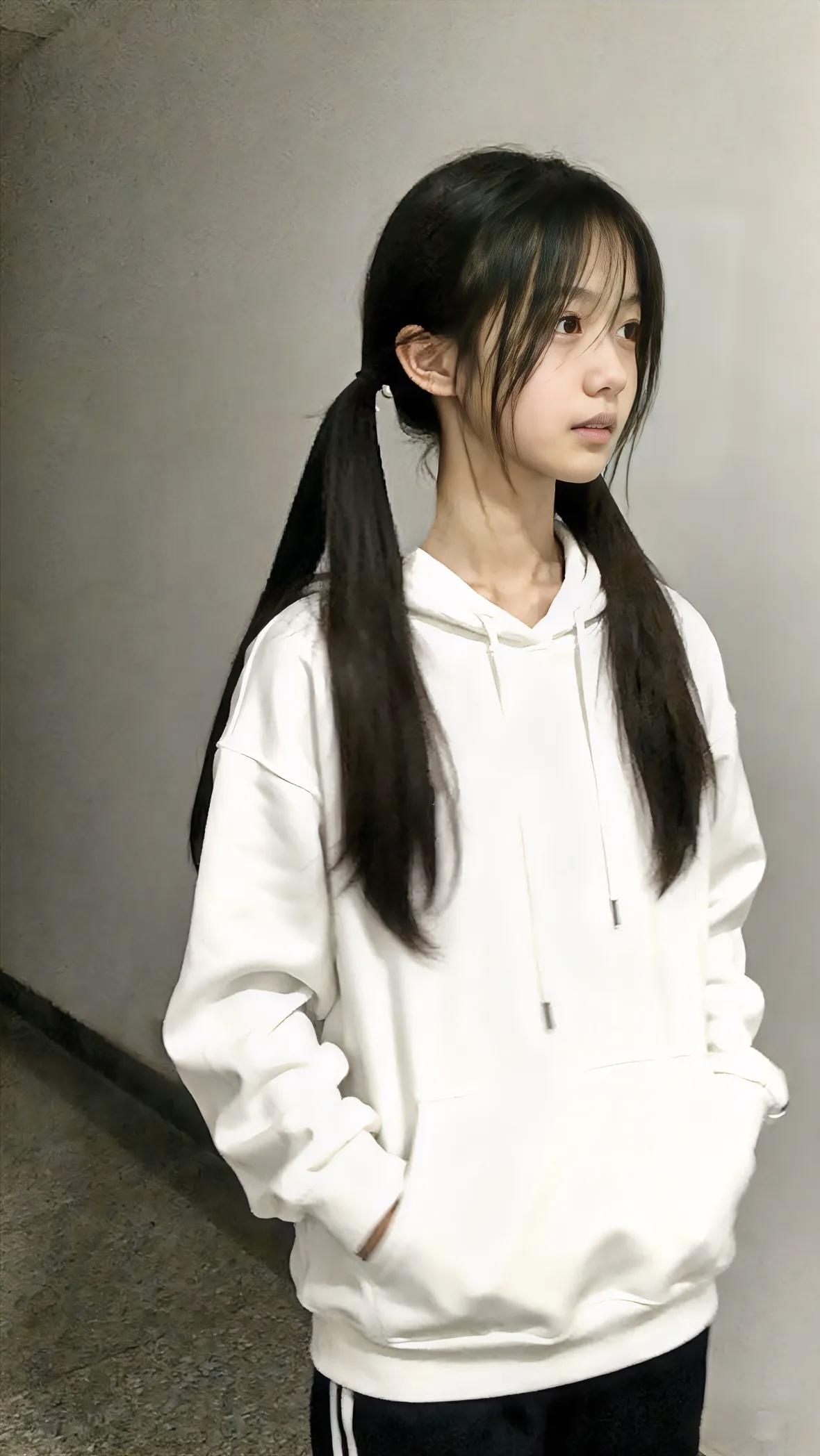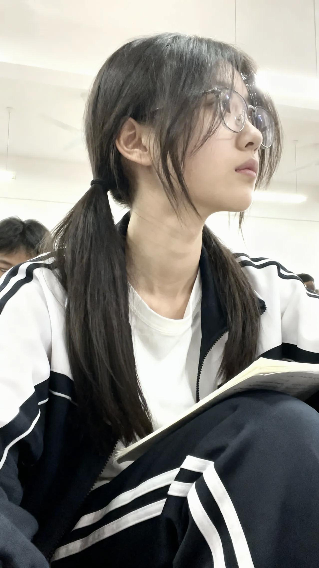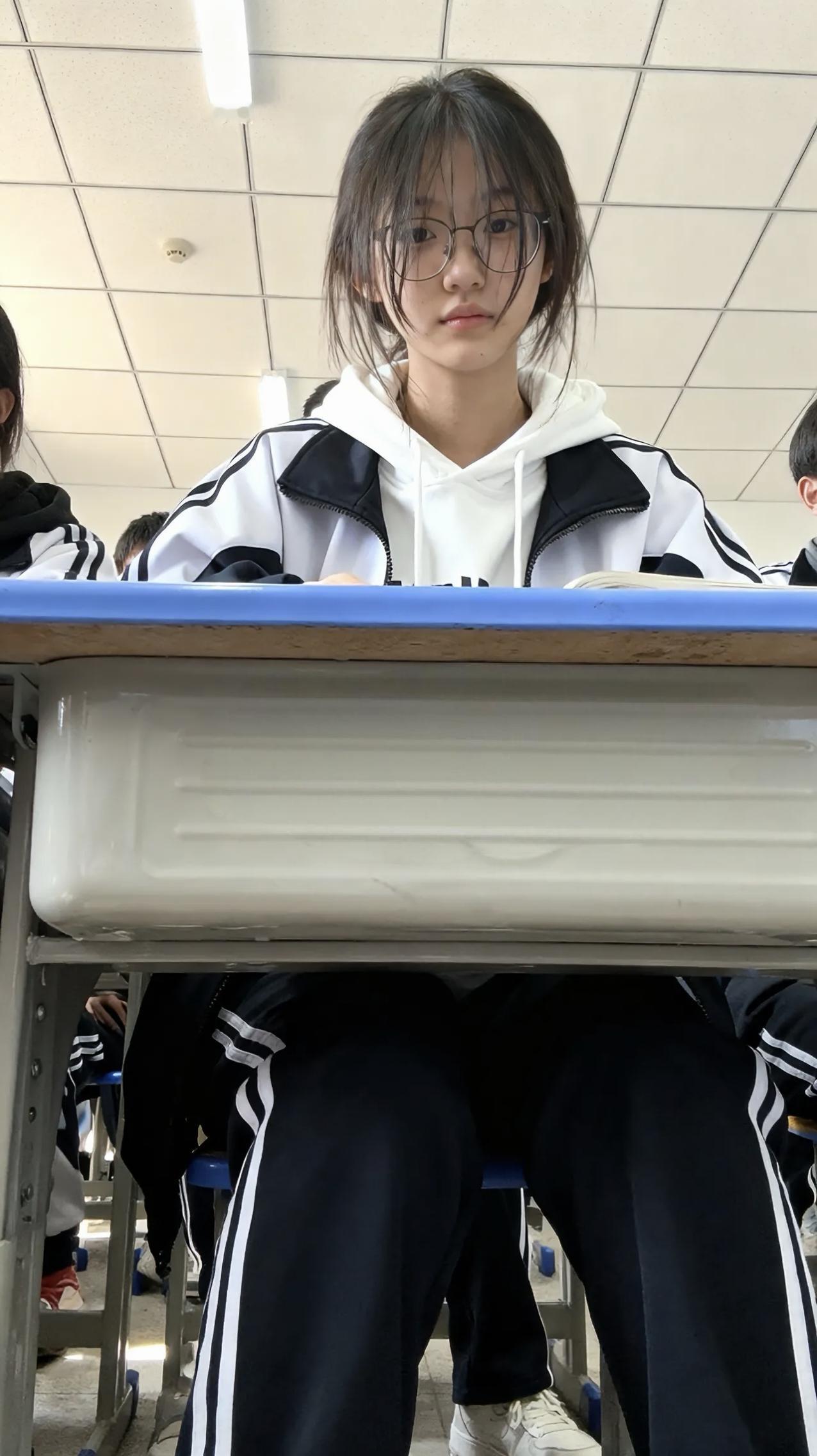 这组照片的优势在于“场景与情绪的适配性”。教室场景中的少女,穿着校服外套与连帽衫