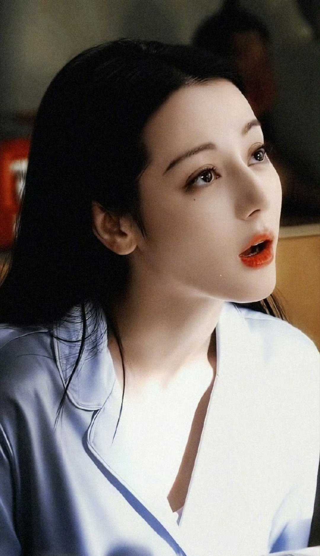 刘亦菲喝醉酒微醺的状态被拍到,脸上已经泛起了红晕,被拍到后眼神微怒