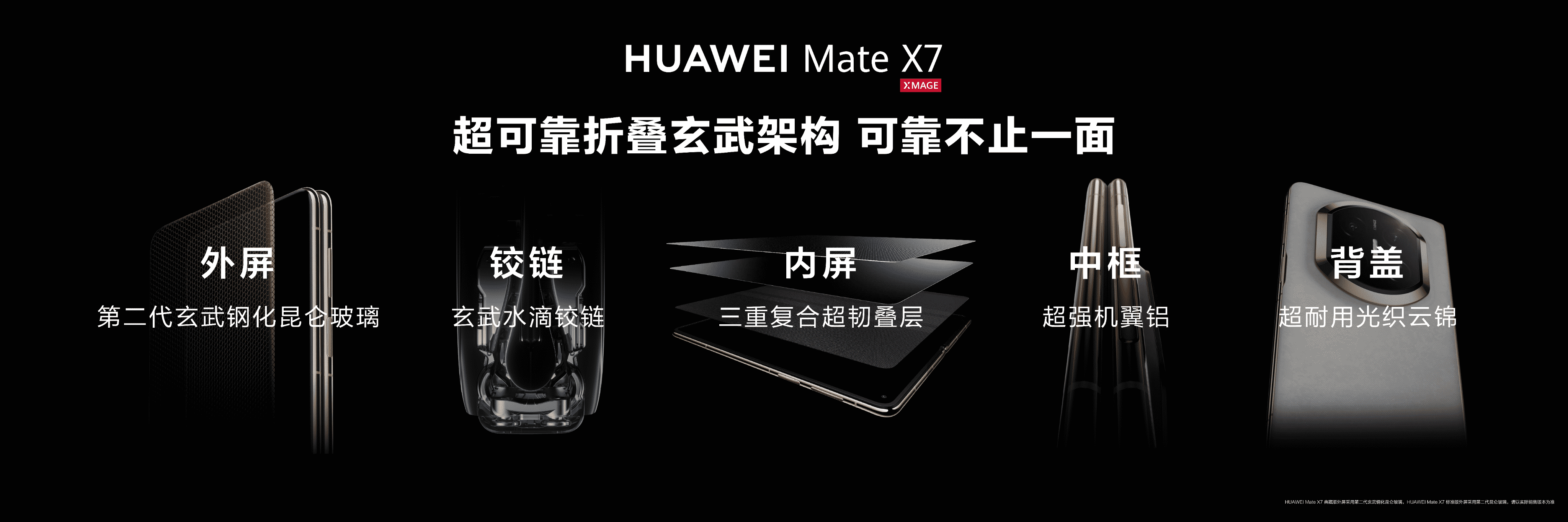要说折叠屏铰链谁玩的明白,华为说第二估计没人敢说第一。马上要上市的华为Mate X7就用上了全新的玄武水滴铰链,不仅结构还是一如既往的可靠,而且这代铰链还用上了2350MPa的火箭钢,果然用料和设计上永远不用怀疑华为的实力。而且在发布会上的测试视频也能看出,华为Mate X7不仅是机身结构强度卷到了新高度,屏幕和防水上更有新的突破。不仅是外屏内屏更耐摔了,机身防水不仅能防住常规水流冲击,甚至还能抵御80℃热水喷淋。整体看下来华为Mate X系列一直在折叠屏铰链和机身可靠性上下了很大功夫,毕竟谁不想用上一款结实耐用而且用起来感受很不错的折叠屏呢?