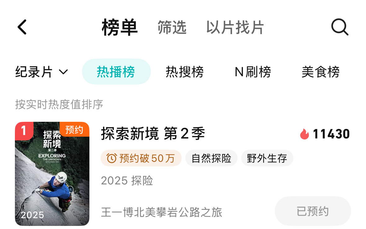 王一博探索新境2预约人数破80w,全面霸榜!未播先火🔥