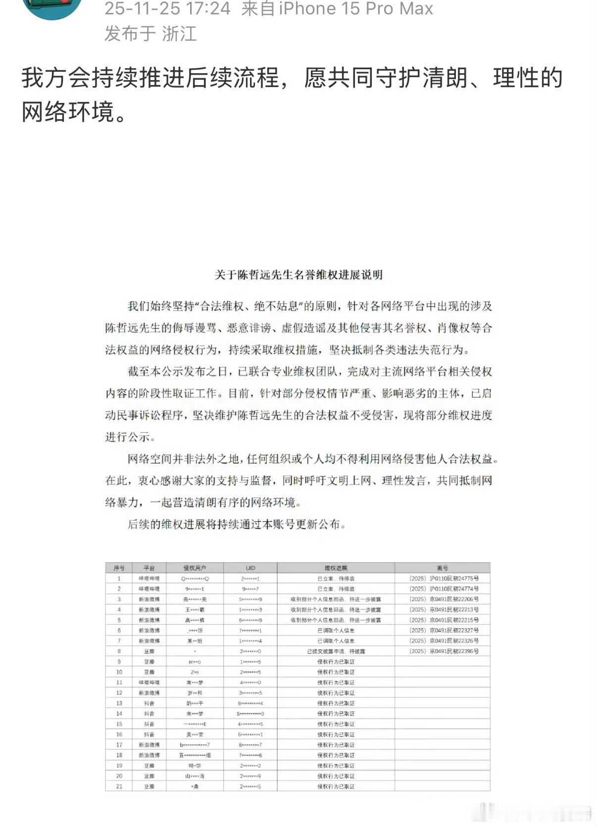 陈哲远告嘿了,新增了十几个用户,会持续推进后续👊