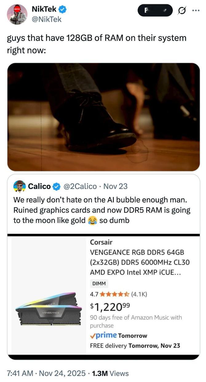 这波AI热潮太离谱了,内存都被炒成黄金了,先是显卡被挖矿和AI训练炒上天,RTX