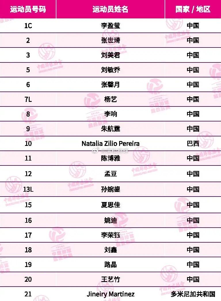 2025-2026中国女排超级联赛天津渤海银行女排19人大名单报名名单中李盈莹担任队长王媛媛加盟土耳其加拉塔萨雷外援:娜塔莉亚(巴西/主攻)、J马丁内兹(多米尼加/副攻)