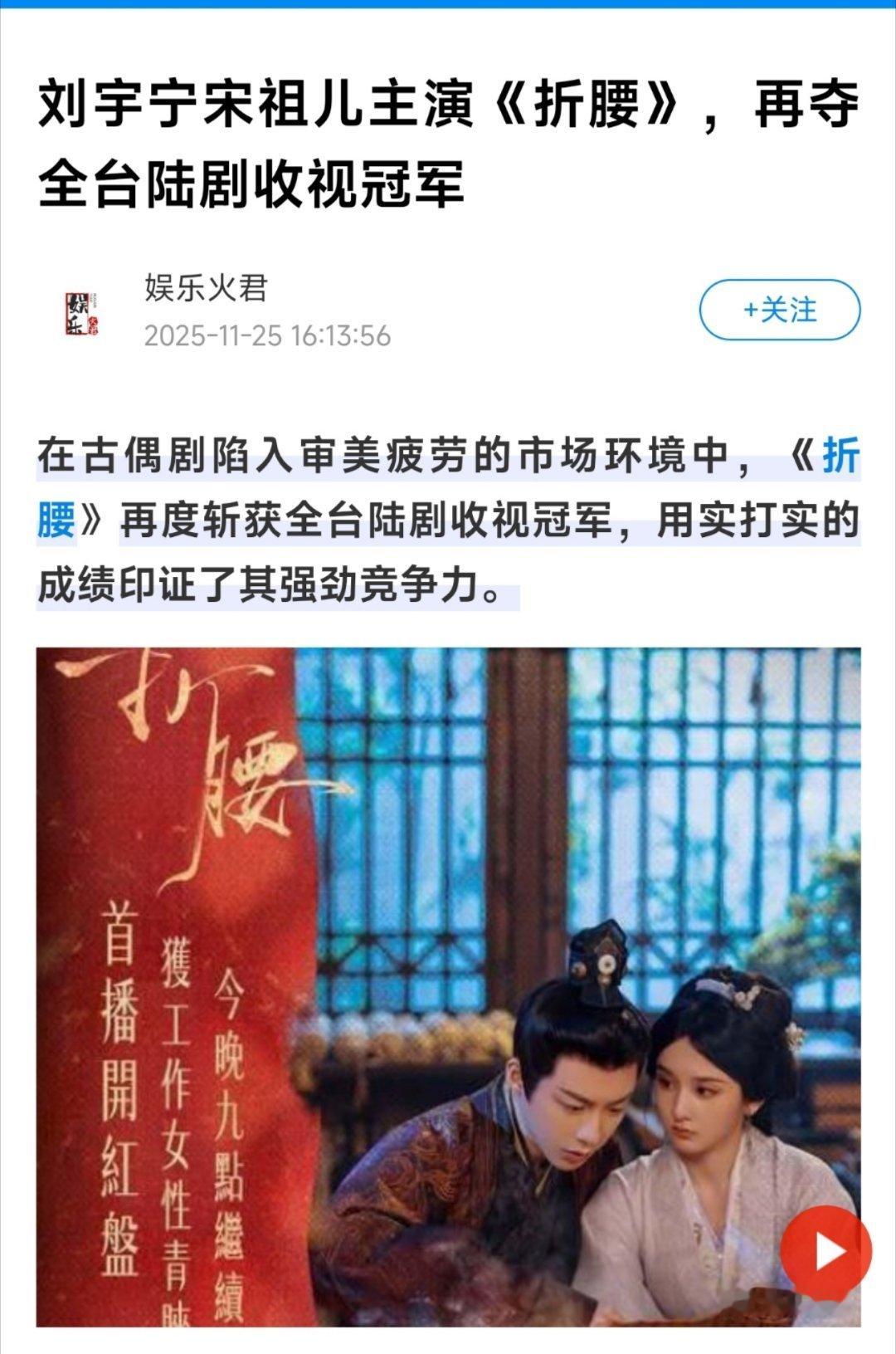 刘宇宁主演的《折腰》,再夺全台陆剧收视冠军,本地人现身说法。