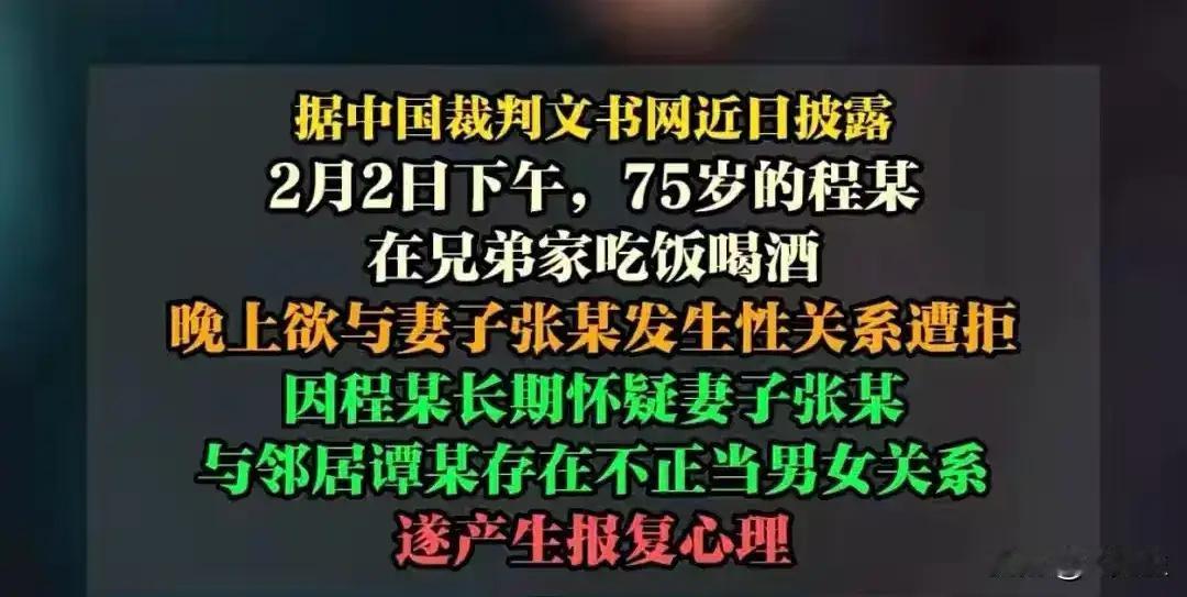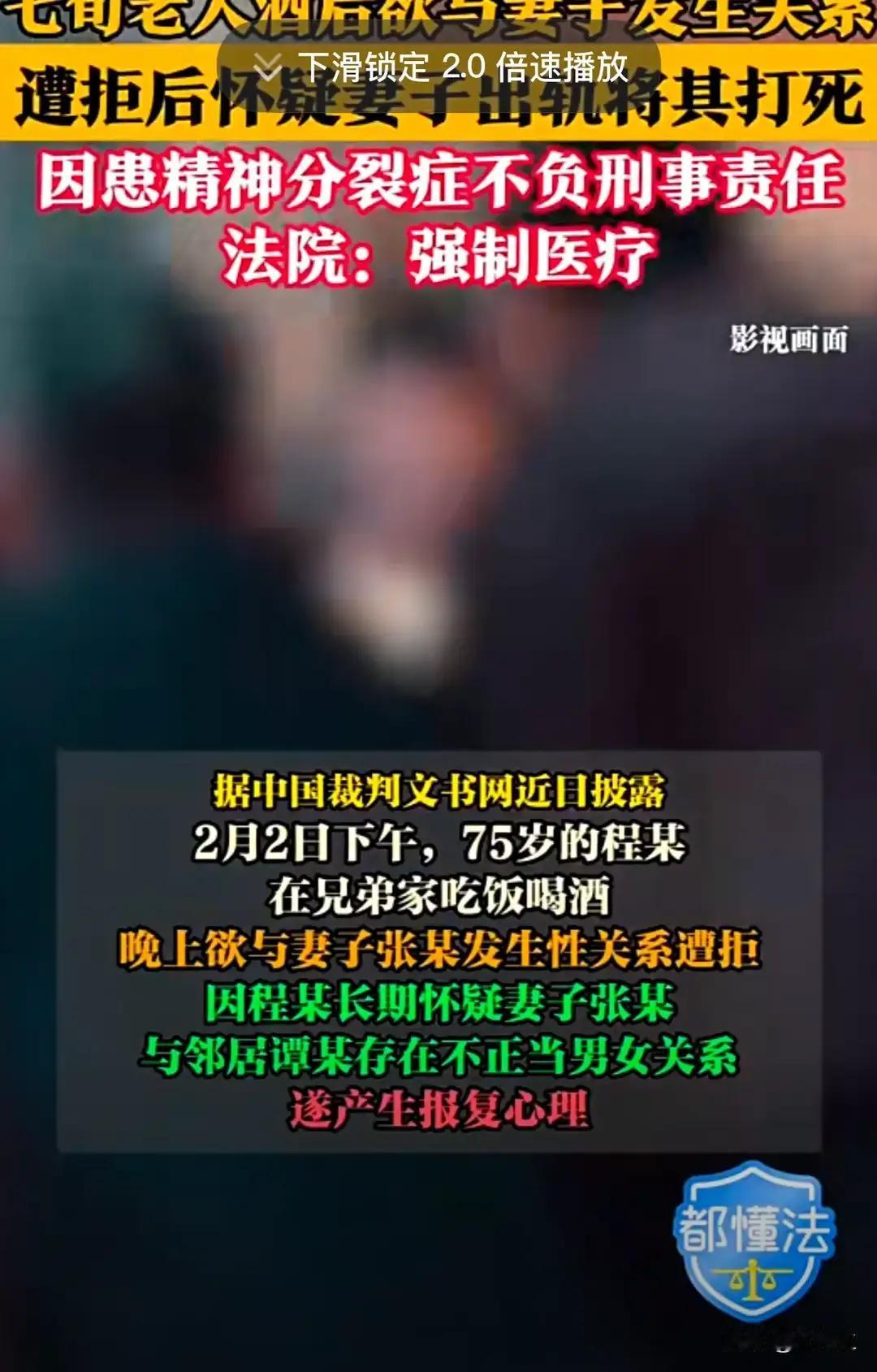 事情的经过令人扼腕叹息。那天晚上,酒精似乎点燃了这位老人的疯狂。有人说,岁月的磨难让他变得脆弱、孤独,酒精成为他唯一的“解药”。然而,酒后失控的他竟然企图与妻子发生关系,遭到拒绝后,疯狂的他变得更加偏执,怀疑妻子出轨,怒火中烧,将她打死。这一幕,令人发指,也让人心碎。 你是否曾想过,这个世界上,有多少像他一样的老人?他们曾经有辉煌的青春,有家庭的温暖,但随着时间推移,孤独、疾病、子女的疏离逐渐侵蚀着他们的内心。或许,他们的精神世界早已支离破碎,只剩下一颗孤独的心在孤寂中哀鸣。 更令人深思的是:我们是否忽视了老人们心中的那份孤独和无助?在家庭的角落,有多少老人被忽略,被冷落,只能靠酒精来麻痹自己?他们的行为,固然令人愤怒,但背后却隐藏着社会和家庭的责任。我们是否也应该反思:我们是不是在不经意间,放弃了对长辈的关心和陪伴? 这起悲剧也提醒我们,家庭的温暖和社会的关怀,是预防悲剧的最后一道防线。老人们需要的不仅是物质的保障,更是精神的慰藉和关爱。我们每个人都应该从自己做起,学习去理解和陪伴那些孤独的生命,让他们在晚年感受到温暖和尊重。 或许,这件事会让我们心疼、愤怒,但更应该激起我们的反思:在追求个人幸福的同时,我们是否也在无意中忽略了身边最需要关心的那一群人?毕竟,家,是我们每个人最温暖的港湾,也是我们共同守护的责任。 让我们用更多的关爱,去温暖那些孤独的老人,让悲剧不再重演。因为,真正的幸福,是懂得珍惜和关怀每一个生命的每一个瞬间。