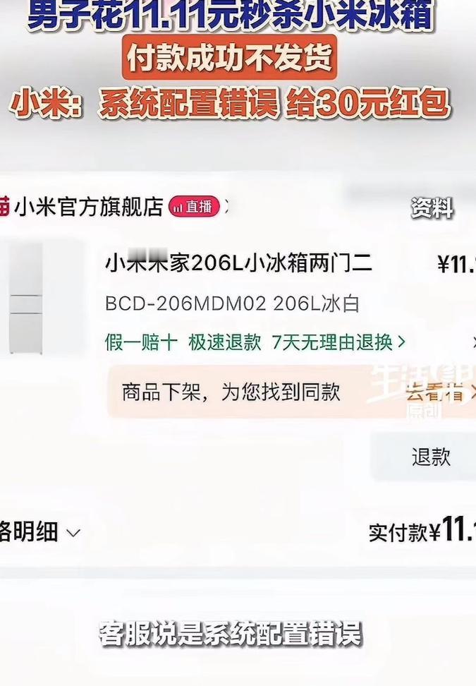 “毫无契约精神!”河南,男子花 11.11 元秒杀小米冰箱,付款成功后不发货。店铺:系统配置错误,给你 30 元红包!男子:把我当要饭的? 事情得从双十一的购物狂欢说起,每年这个时候各大平台都会推出各种秒杀活动,张先生也不例外,蹲点守着心仪的商品,就盼着能拼手速捡个漏。 那天他盯着手机屏幕上的倒计时,手指悬在支付键上,紧张得不行,毕竟 11.11 元买一台小米冰箱,这种好事堪比中彩票。当支付成功的提示音响起时,张先生忍不住心里一喜,甚至已经开始琢磨,这台冰箱买回来该塞进厨房哪个角落,想象着用上新冰箱的便捷。 可这份狂喜没持续多久,就被商家的一条消息浇了个透心凉,商家冷冰冰地发来通知,说订单是 “系统配置错误” 导致的,不能正常发货还直接建议张先生取消订单。 至于补偿,只有区区 30 元红包。张先生当场就懵了,自己明明是按规则参与秒杀,付款流程也没任何问题,怎么就成了 “配置错误”?这 30 元红包,和一台冰箱的价值相差甚远,更重要的是这种单方面撕毁约定的行为,让他觉得自己的信任和期待被狠狠践踏了。 在张先生看来这根本不是简单的 “标错价”,而是商家毫无契约精神的表现,购物平台的秒杀活动,本质上是商家和消费者之间的一种约定,消费者按规则付款成功,契约就已经成立,商家理应履行发货义务。 可现在商家一句轻飘飘的 “系统错误”,就想否定已经生效的订单,用 30 元红包打发人,这和 “耍无赖” 没什么区别,难怪张先生越想越气,觉得自己被当成了随便糊弄的 “要饭的”,他在乎的不是差价,而是被尊重的权利和商家该有的诚信。 更让人无语的是平台的态度,张先生试着维权,可平台的回复全程 “和稀泥”,只说核查后确实可能是价格设置错误,却对商家的违约行为没有任何强硬约束,后来大家才知道,商家其实早就算过一笔账,由于订单金额太低,他们宁愿接受平台的轻微违约处罚,也不愿按约定发货,毕竟赔偿 30 元红包,远比实打实发一台冰箱划算得多。 这一下网友们彻底炸了,大家纷纷吐槽:“这哪里是系统错误,分明是商家不想认账!”“11.11 元秒杀是商家自己搞的活动,消费者按规则付款了,就该履行承诺,凭什么说不发就不发?”“30 元红包就想打发人,这契约精神也太廉价了!” 还有网友分享了自己类似的经历,说曾经秒杀到低价商品后,商家也是用 “标错价”“系统故障” 为由拒发货,最后只能不了了之。 其实大家愤怒的核心,从来不是 “没捡到便宜”,而是对这种漠视规则、践踏诚信的行为感到不满,在商业交易中,契约精神是底线,消费者信任商家,按规则参与活动、支付款项,商家就该遵守约定,履行义务。 可现在有些商家把 “系统错误” 当成了万能挡箭牌,把消费者的信任当成可以随意消耗的筹码,用极低的违约成本,破坏着市场的公平和秩序。 有网友犀利地指出,这根本不是什么 “失误”,而是商家精心算计的 “毁约式促销”,先用 11.11 元秒杀的噱头吸引流量,收割点击量和关注度,把热度炒起来后,再对真正秒杀成功的消费者翻脸不认人,用几十元红包封口。 这种操作看似 “精明”,实则是在透支自己的口碑,一次两次或许能蒙混过关,但次数多了消费者再也不会相信这样的商家,哪怕以后真的推出优惠活动,也没人愿意买单。 要知道30 元红包或许能暂时平息一笔订单的纠纷,却买不回崩塌的口碑,买卖之间技术故障或许可以被原谅,但毫无契约精神、把消费者当猴耍的傲慢,是绝对不能被接受的,消费者敢参与秒杀,是对商家和平台的信任,而商家的责任就是守住这份信任,履行该尽的义务。 希望这件事能给所有商家提个醒:诚信才是生意的立身之本,契约精神不能当儿戏,也希望平台能加强监管,完善规则,让违约的商家付出应有的代价,别让消费者的信任一次次被消耗。 (信息来源:生活帮)