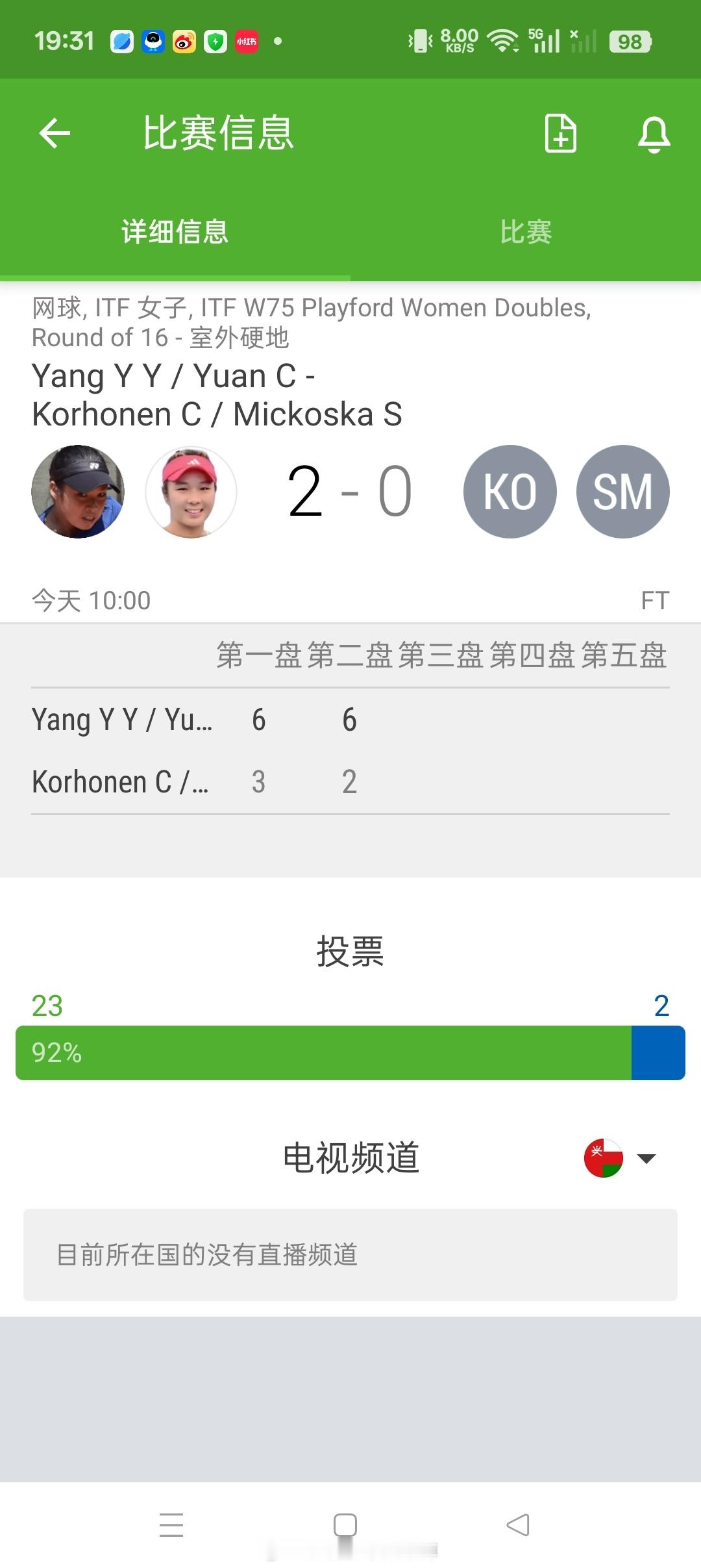 【横滨W50】资格赛决胜轮张莹🇨🇳 6-3/6-3击败🇯🇵小林火乃香晋级