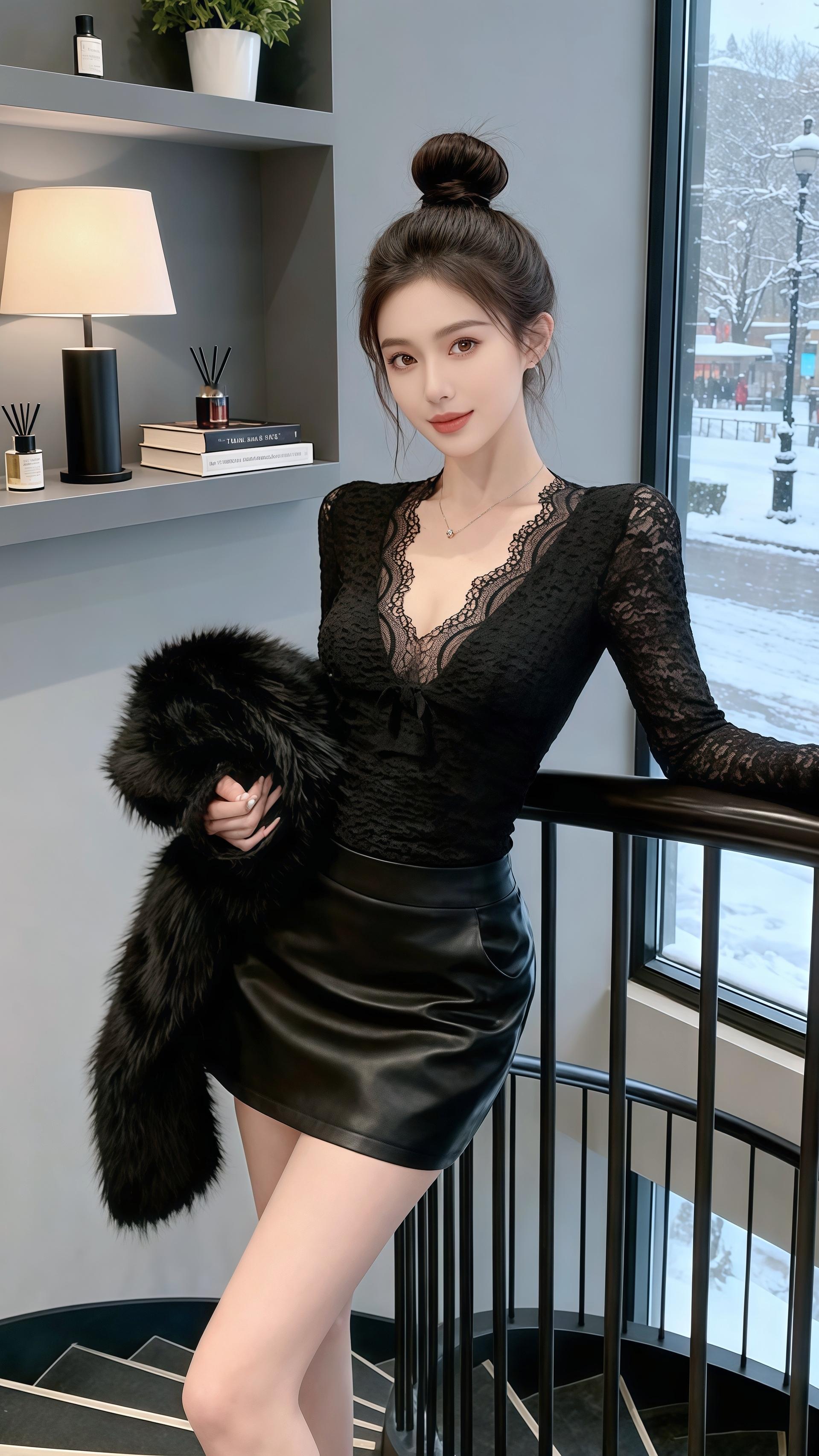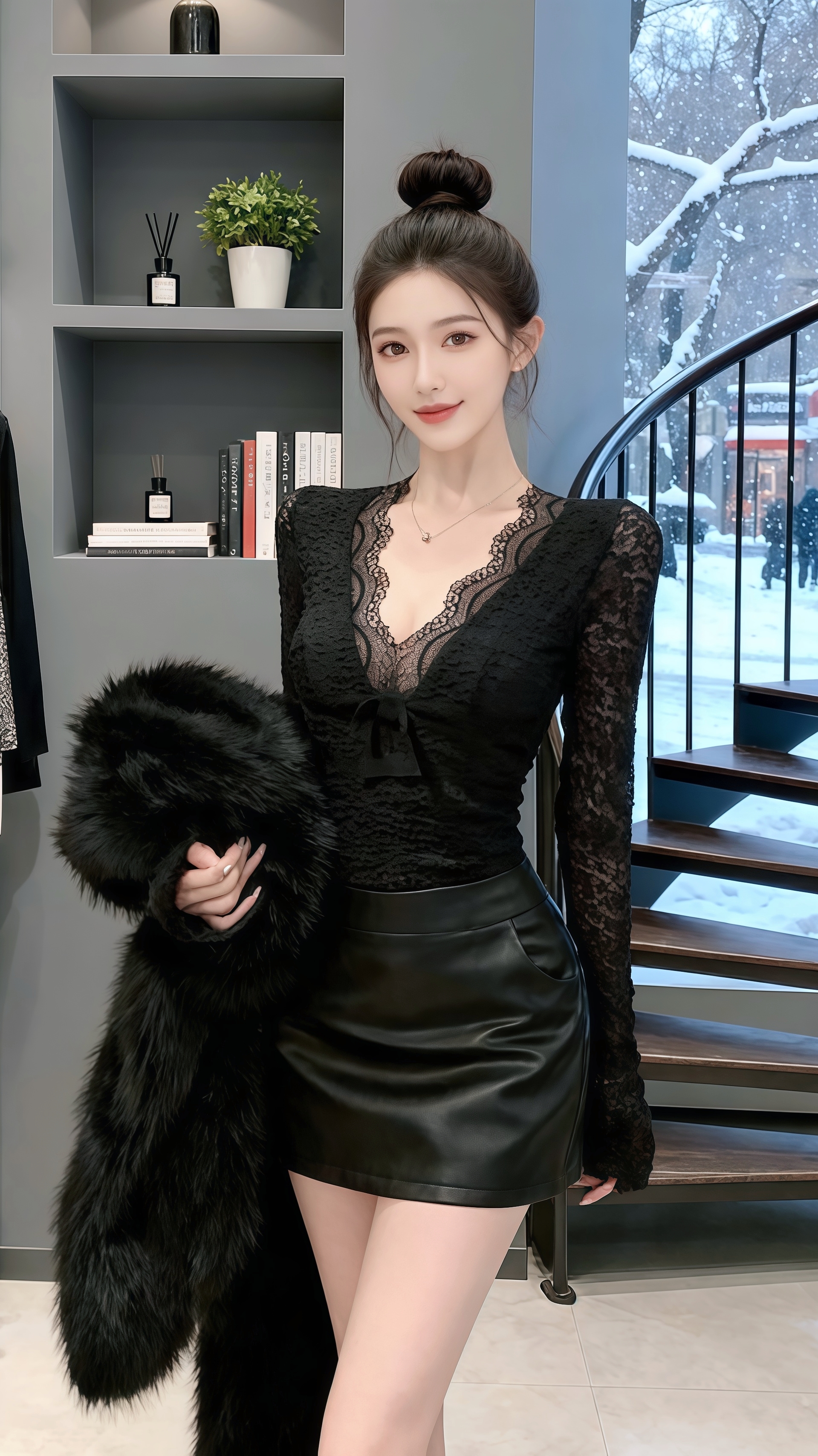 窗外落雪裹了冬意,室内的许妍以蕾丝与皮质碰出冷艳的烟火气。黑是底色,柔媚藏在镂空纹路里,随手拢住的毛茸暖意,是凛冬里不肯妥协的精致。连衣裙 气质穿搭 纯欲天花板 打底裙 外穿内搭都好看