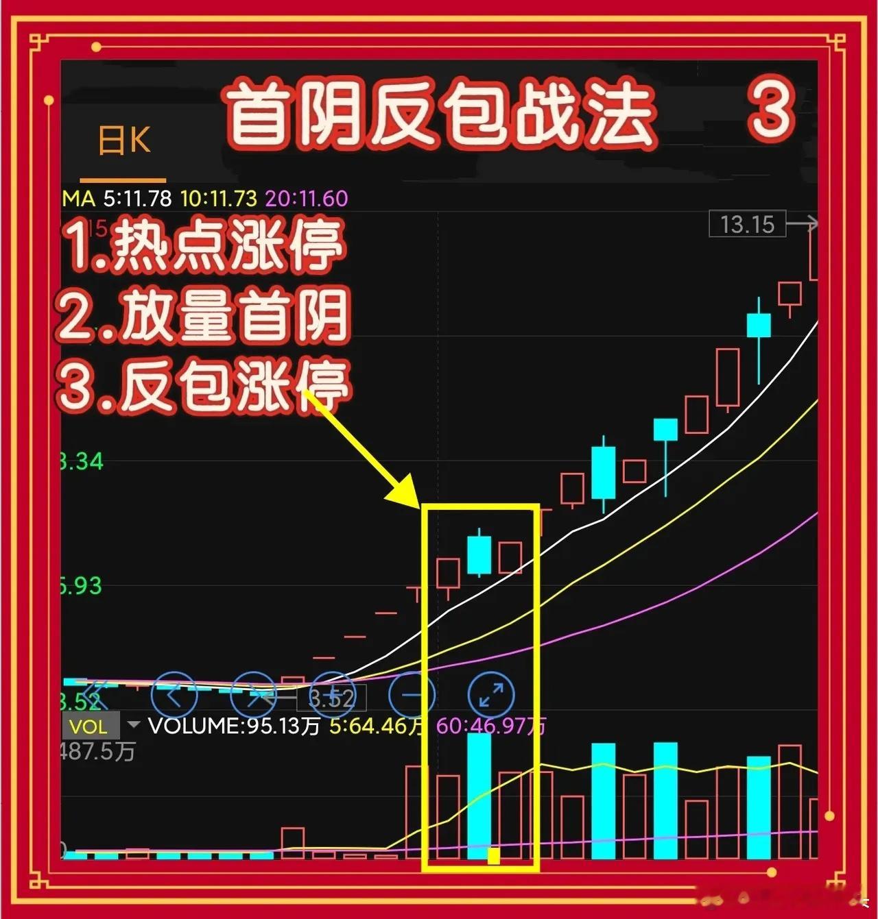 强势股首阴反包战法分歧时买入,一致时卖出其一,标的应为连板高标,处于人气榜前三,常现身龙虎榜,量能每日递增,这是反包情绪扩散的基础。其二,首阴当日需大幅杀跌,振幅超8%,换手高于15%,且杀跌低点成交密集,使套牢盘成本瞬间提高,为次日反包减轻抛压。其三,巨阴夜盘外围无利空,期指贴水收窄,A50微红,隔日集合竞价高开或平开幅度超1%,量能放大一成,视作预期逆转信号。其四,反包日早盘半小时内必须封板,封单额占流通市值3%以上,且卖一档无连续万手大单砸盘,以此确认主力做多决心。其五,自首阴日起算,调整周期不超三个交易日,期间题材热度保持在前五行列,断板则放弃,避免人气涣散。操作纪律:仓位不超总资金20%,分2次反包当天介入,破五日线或尾盘未封板则减半,次日不创新高全部清仓,切勿心存幻想。