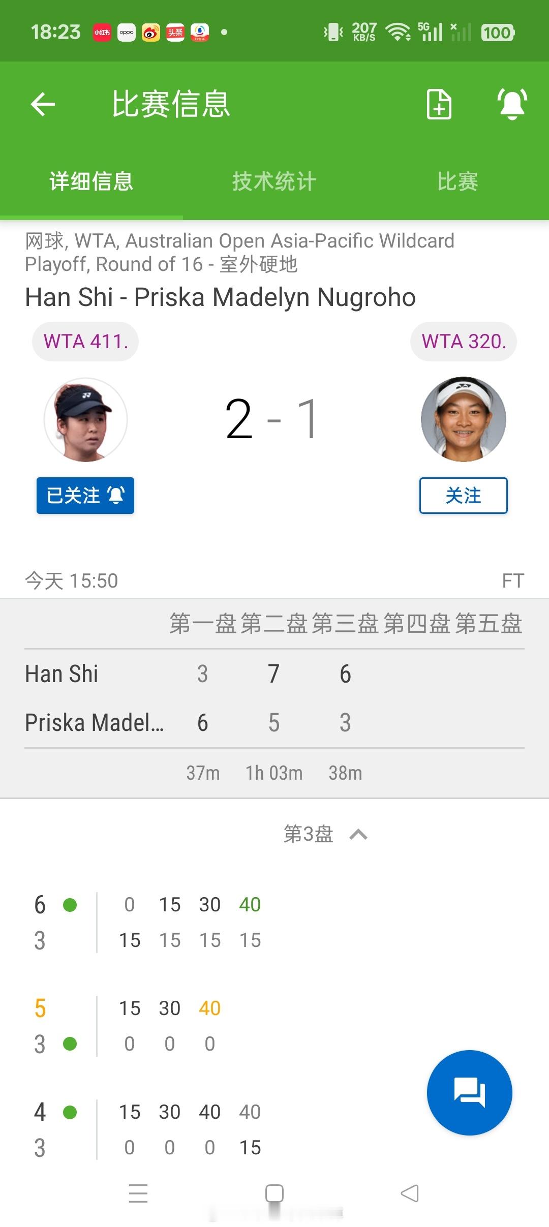 【澳网外卡赛】🇨🇳施晗3-67-56-3逆转🇮🇩球员努格罗霍晋级八强