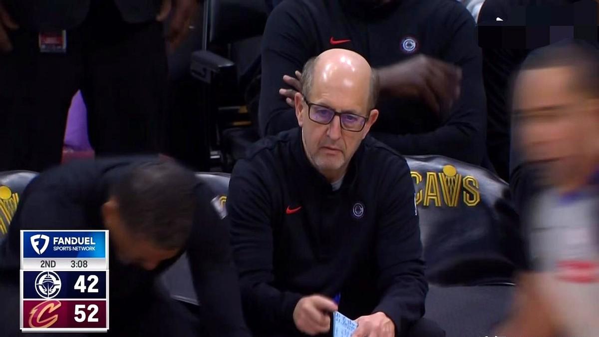 快船打骑士这比赛,导播是真会搞事情! 第二节暂停,那边泰伦卢急得跟教练组嚷嚷,这边镜头直接怼脸小范甘迪。只见老范一个人坐着,黑着脸,压根没参与讨论。 好家伙,导播还特意用圈把他标出来,这意思简直就是明示了! 快船战绩差成这样,伦纳德复出还落后十分,球迷早就盼着小范甘迪上位了。现在这镜头语言,是不是在告诉大家:泰伦卢的帅位,真悬了?这戏码,耐人寻味啊!