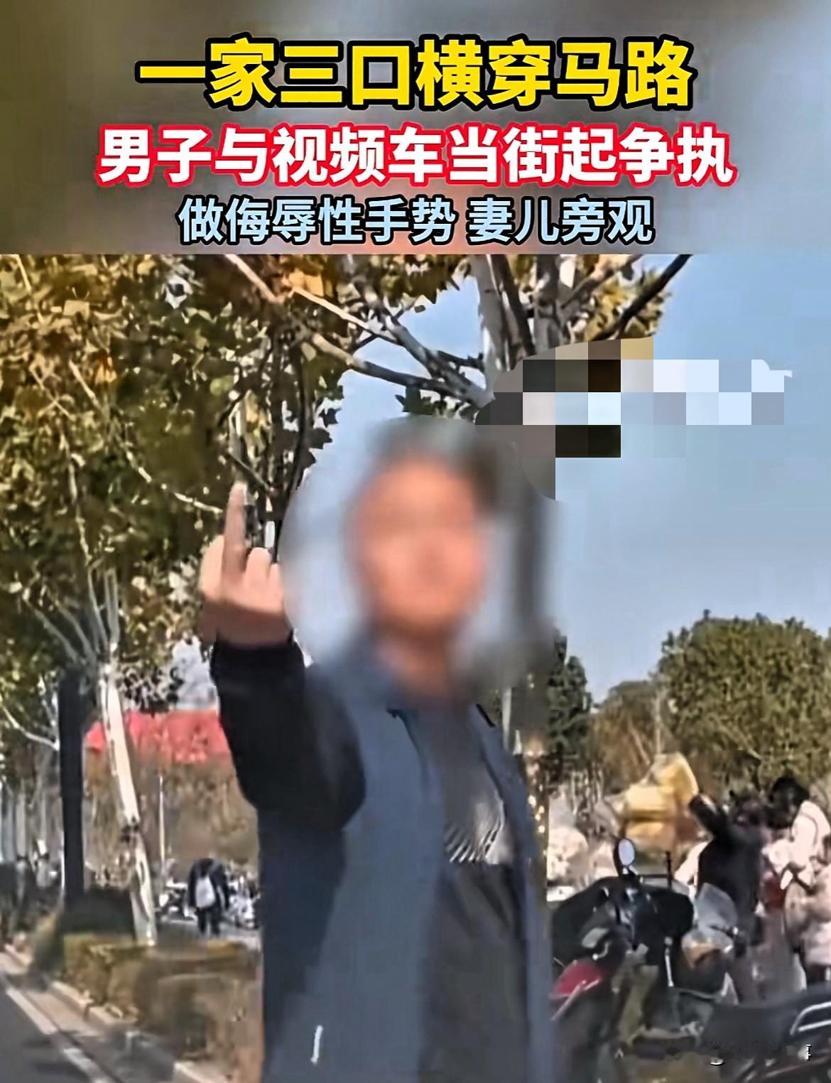 太冲动了!司机开车正常行驶,突然前方有一家3口横穿马路,司机按喇叭好心提醒,不料惹怒男子,男子故意挡在车前,与司机发生争执,居然做出这种事!网友:“幸亏是和谐社会救了他!” 就因为司机按了一声喇叭,男子叉腰拦路,连续做侮辱性手势,还与司机师傅发生争执。 首先男子一家不遵守交通规则,横穿马路还有理了,如果发生车祸,能怪谁呢?司机也是顾全大局,没有和你计较,不是每次都会这么幸运,也不是每个人都会这么惯着你! 更何况父母是孩子最好的老师,更应该以身作则,做个好榜样,这样干能教育好孩子吗?以后记得文明出行,长得心吧! (信息来源:浪潮新闻)