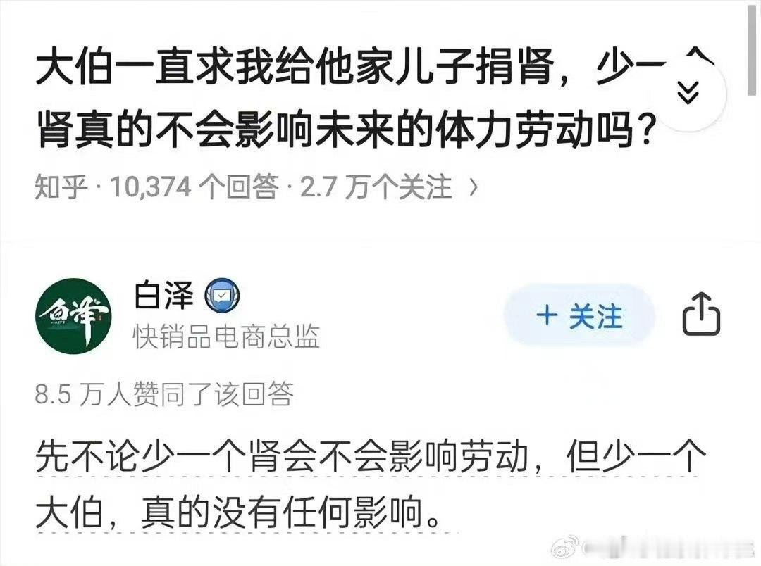 大伯求你给自己儿子捐肾,你要问一下你奶奶,这个大伯是不是她亲生的,万一是抱养的,