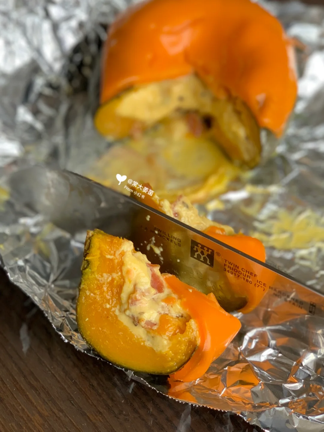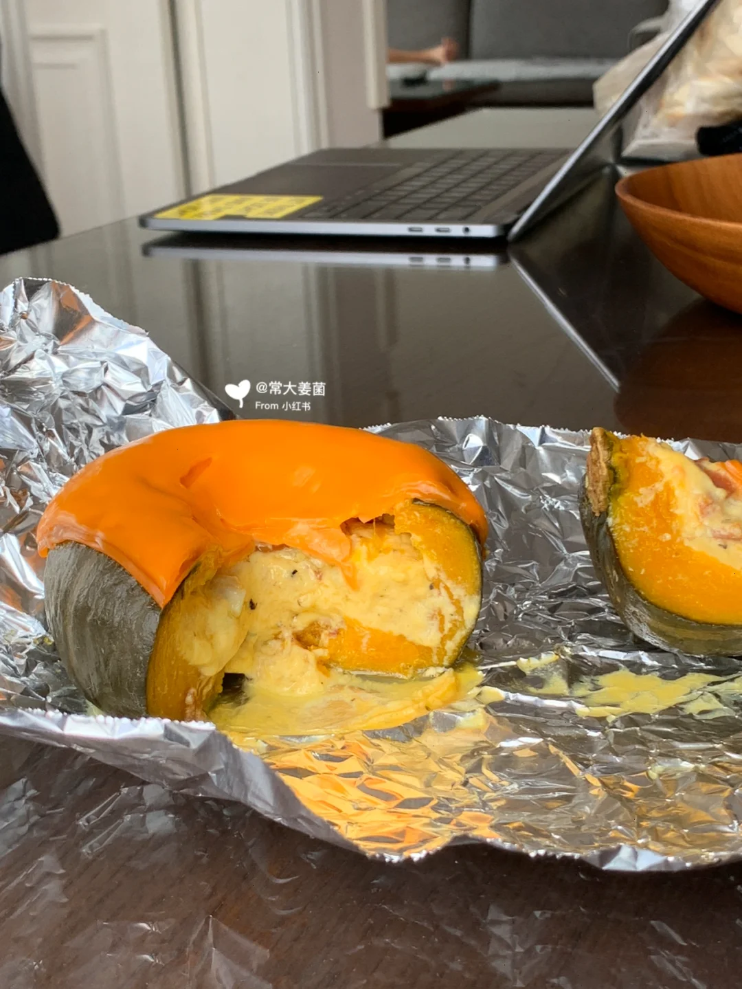 ✨今天在南瓜里放了萨拉米和蒜末,搭配布丁的口感!