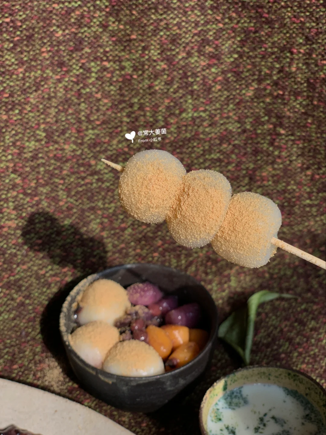 2.糯叽叽的香甜小圆子,撒上黄豆粉,神仙组合!
