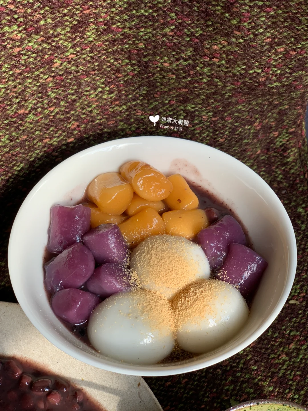 3.各种糯叽叽的芋圆甜品碗🥄:南瓜/芋泥芋圆➕黑芝麻汤圆➕蜜豆打底