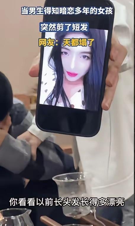 同学聚会,那个我暗恋多年的女孩,如今竟成了“假小子”:寸头短发,灰色条纹毛衣裹身,中性风十足,完全没了当年长发飘飘的女神模样。 “你头发呢?”我脱口而出,直接冲到她面前质问。女孩被这突如其来的质问弄得不知所措,眼神里满是慌乱。我急切地掏出手机,翻出她长发时的照片递过去。照片里的她,黑色长发如瀑,妆容精致,笑容甜美,是妥妥的大美女。对比之下,眼前的形象让我难以接受。 “是不是防我呢?为什么剪头发?”我追问,语气里带着失落。女孩沉默片刻,轻声说:“只是想换个风格,做真实的自己。”聚会现场的气氛变得微妙,其他同学纷纷投来目光。作为旁观者,我也忍不住感慨:好好的大美女,怎么突然变成这样?可转念一想,或许这只是她成长路上的一次自我探索。