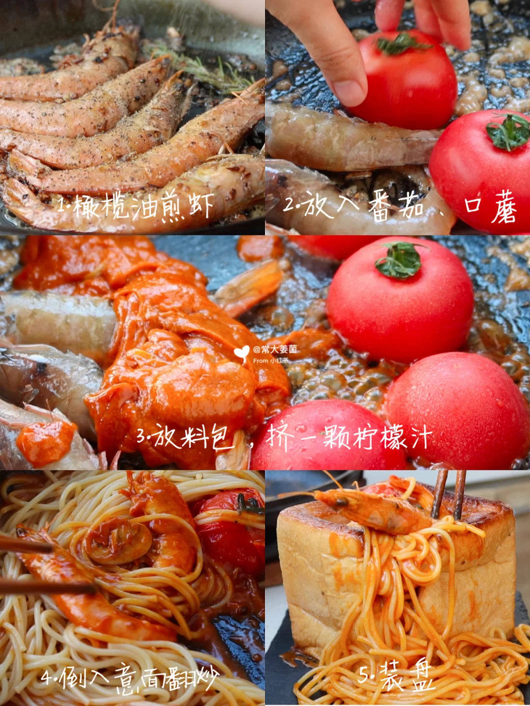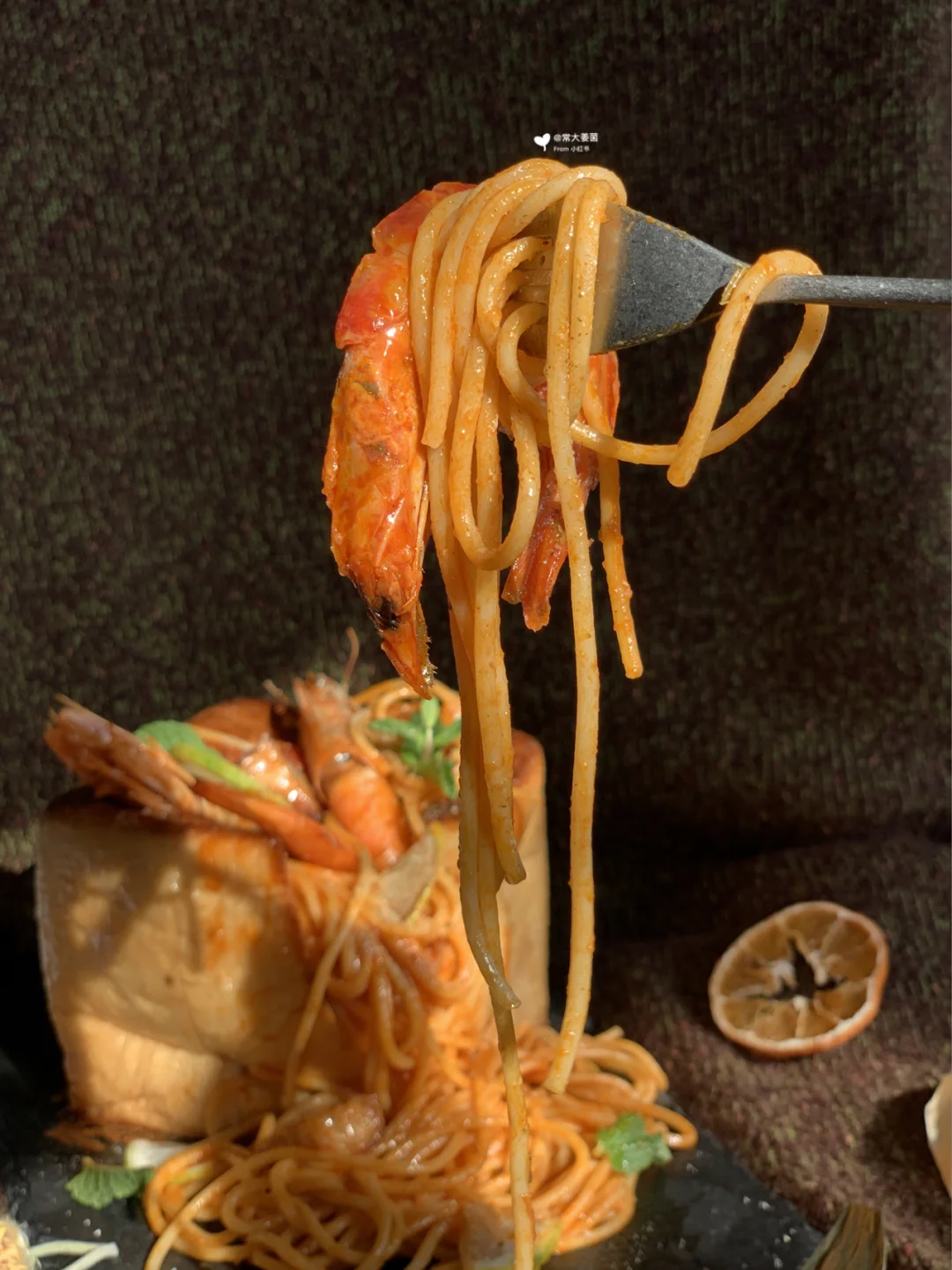 经典的🍝番茄意面🍝,改版做了🦐🍋冬阴功意面口味!