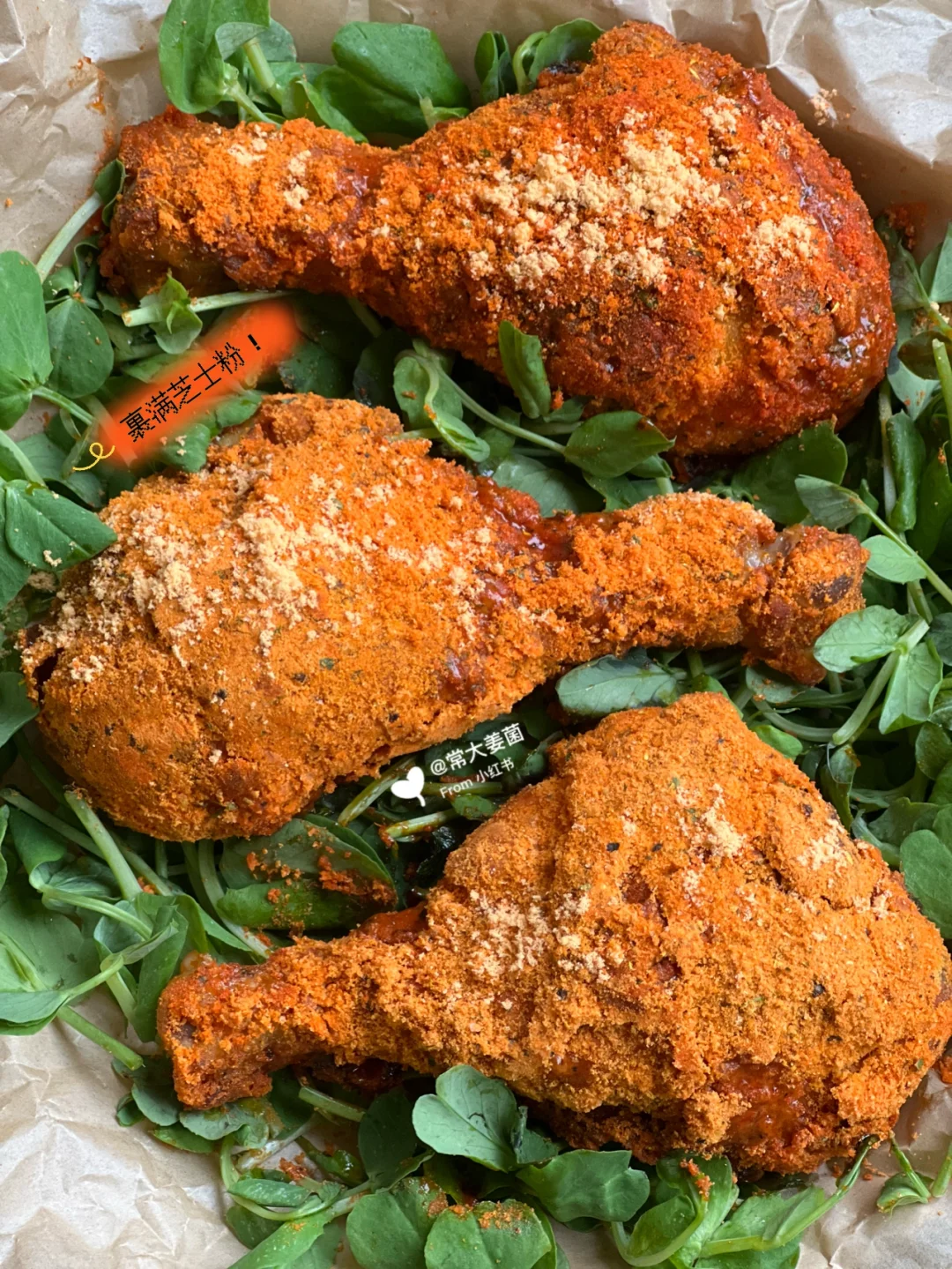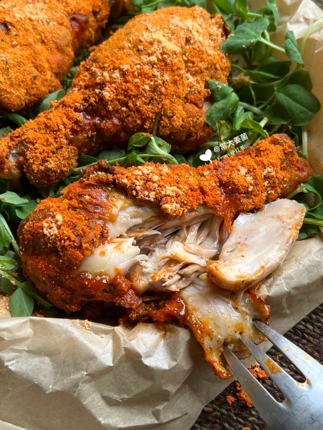 今天突然!馋这一口韩式BHC铺满芝士粉的炸鸡!🍗