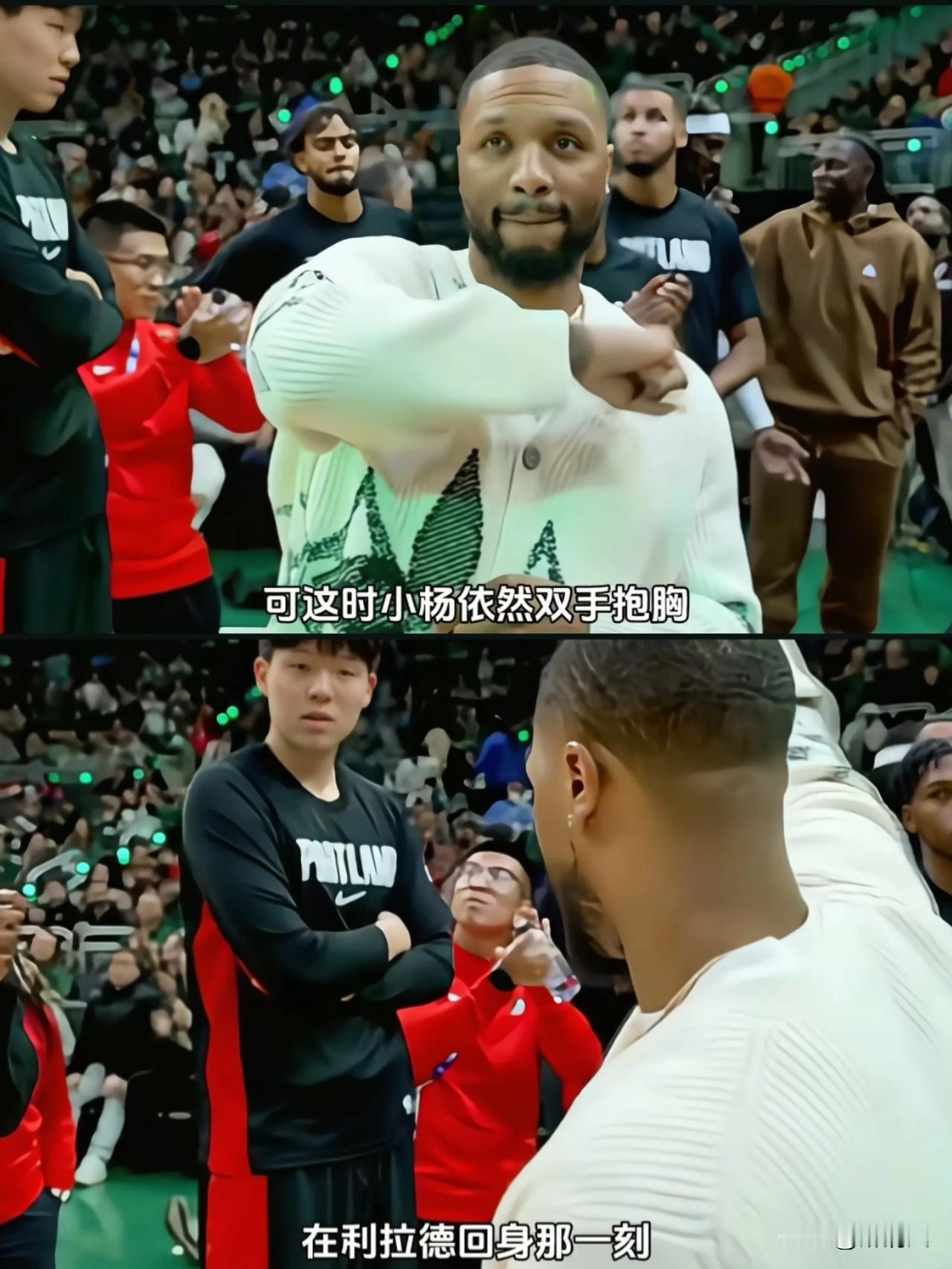 恕我直言,杨瀚森情商太低了,来看这场景 当雄鹿主场播放致敬开拓者领军人物利拉德的视频后,杨瀚森成为了显眼包,当镜头切换到利拉德时,全场观众掌声雷动,利拉德握拳捶胸表示感谢,并转身向全场观众挥手致谢!而利拉德身后的杨瀚森却与大众格格不入,跟个木头人一样,双手抱胸,毫无动作! 利拉德转身挥手致谢肯定看到了杨瀚森这呆若木鸡的表现,心里估计对杨瀚森失望了,对杨瀚森的期望值大打折扣!不得不说,杨瀚森这都去了NBA好几个月,篮球技术不仅没提高多少,就连最基本的NBA赛场文化都没学会融入,如何在NBA立足? 以前人们经常说易建联性格内向,融入不了NBA文化,最后被淘汰,我觉得,今天假如今天的杨瀚森换做易建联在场,易建联肯定会给利拉德鼓掌的!利拉德可是NBA赫赫有名的人物啊,而且还是你杨瀚森开拓者队的老大,如此木头人的表现,属实让人无法理解! 怪不得杨瀚森老是被开拓者主教练斯普利特按在冷板凳上,或者只给上几分钟。各位你就说嘛,杨瀚森篮球技术达不到NBA,情商还不行,你要是主教练,你会让杨瀚森上场吗?