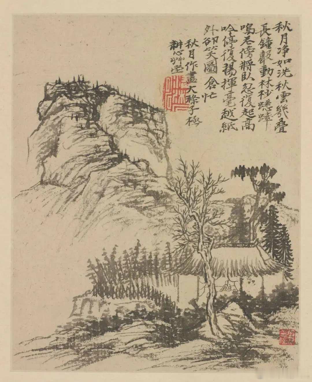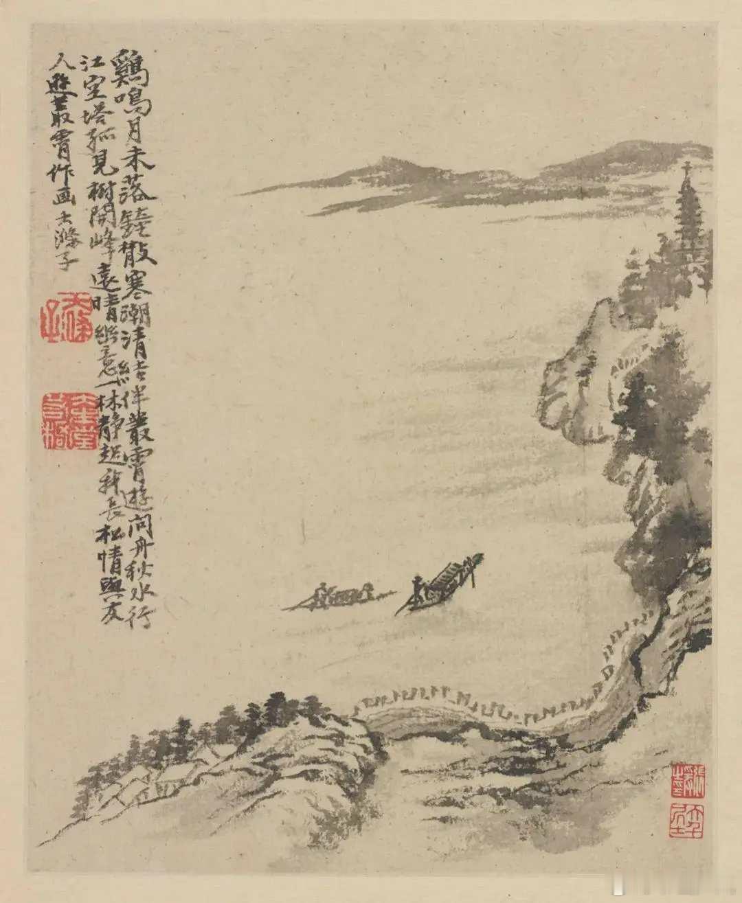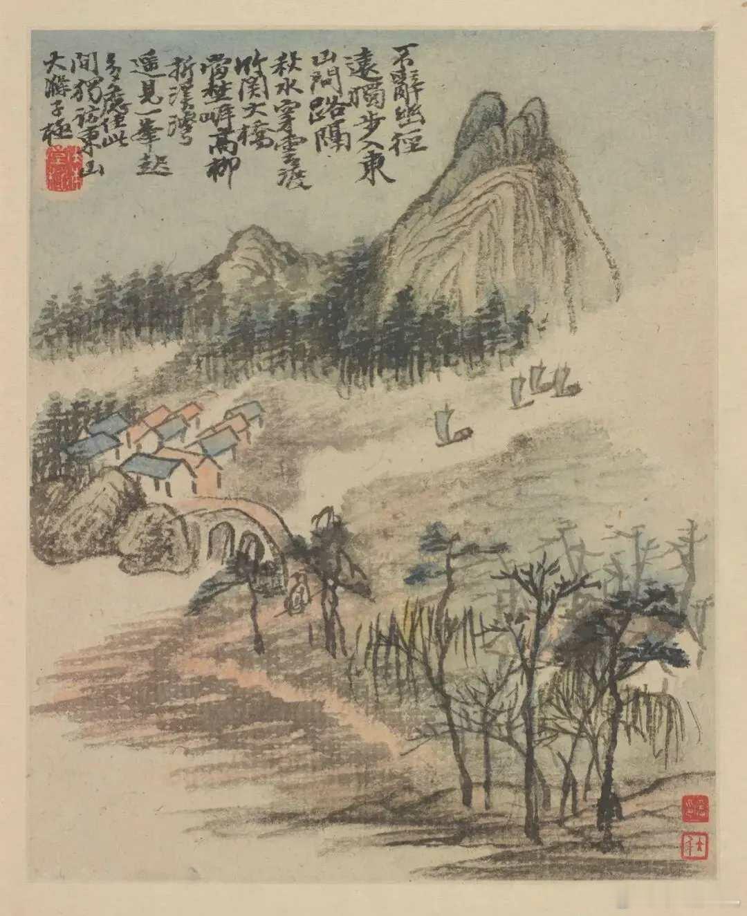 石涛《金陵怀古册》,计十二开,每开写金陵一景。用笔恣肆,水墨淋漓,色墨交融,是典型的石涛成熟时期作品。