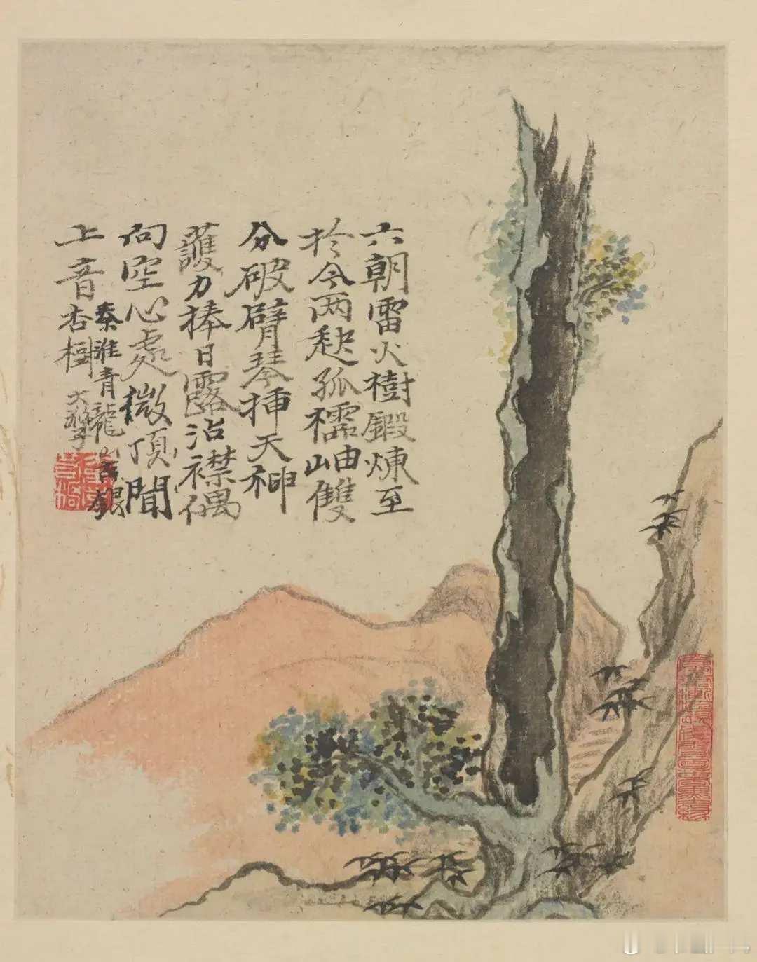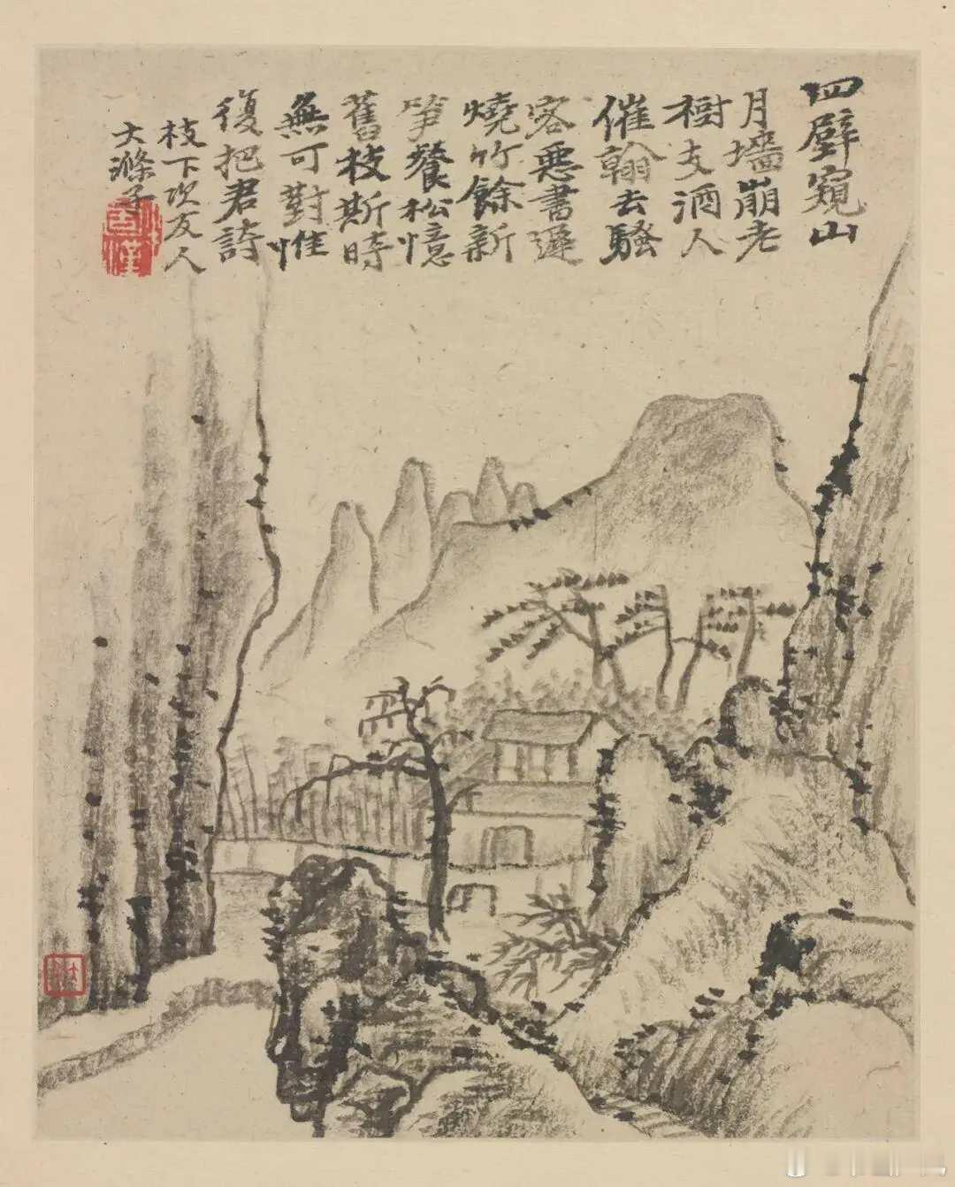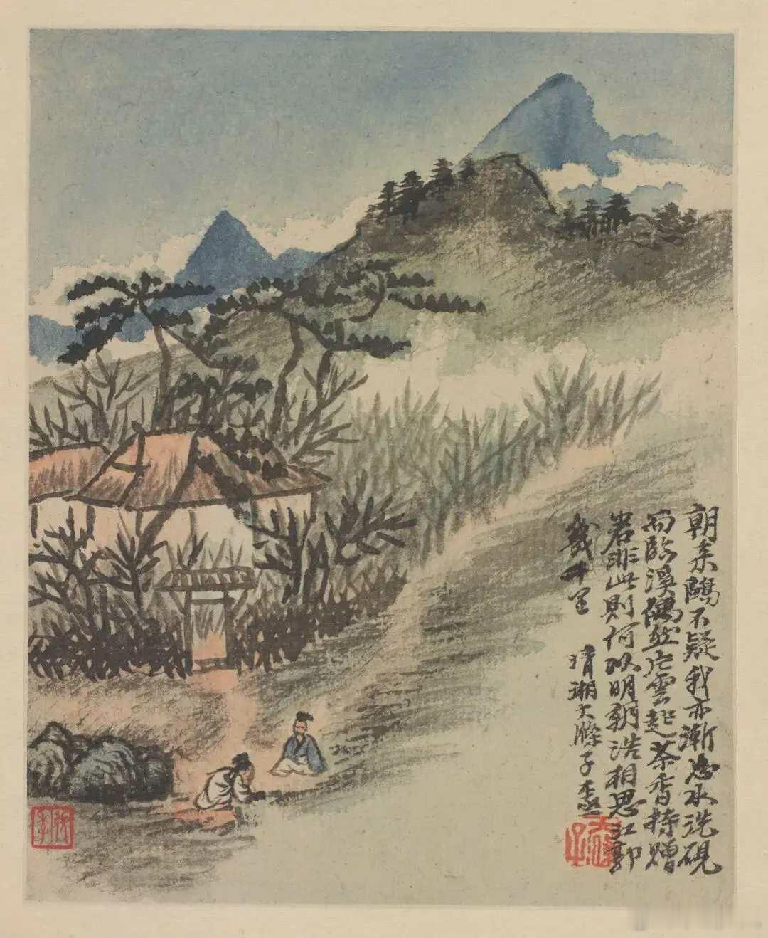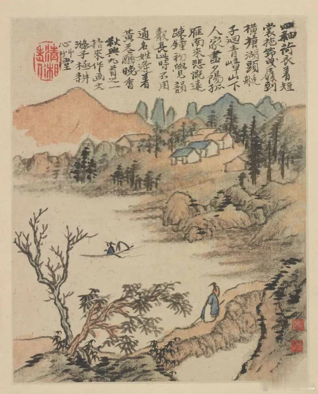 石涛《金陵怀古册》,计十二开,每开写金陵一景。用笔恣肆,水墨淋漓,色墨交融,是典型的石涛成熟时期作品。