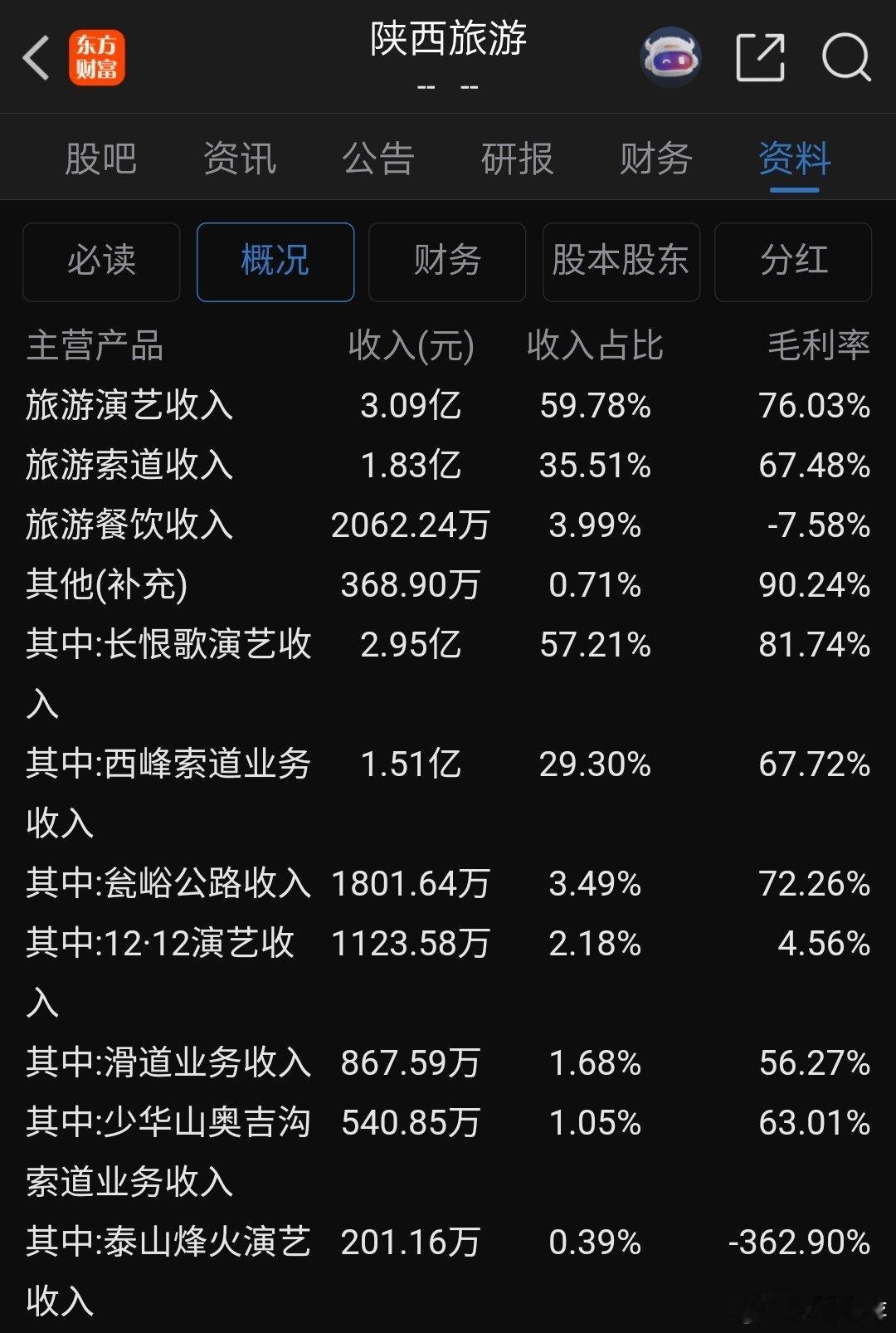 西安就有三家(西安旅游、西安饮食、曲江文旅)旅游酒店餐饮类上市公司了,这又上一家陕西旅游,而且公司除了西峰索道并没其他优质旅游资产,不知道上市后有没有整合诸如华山旅游集团等预期。