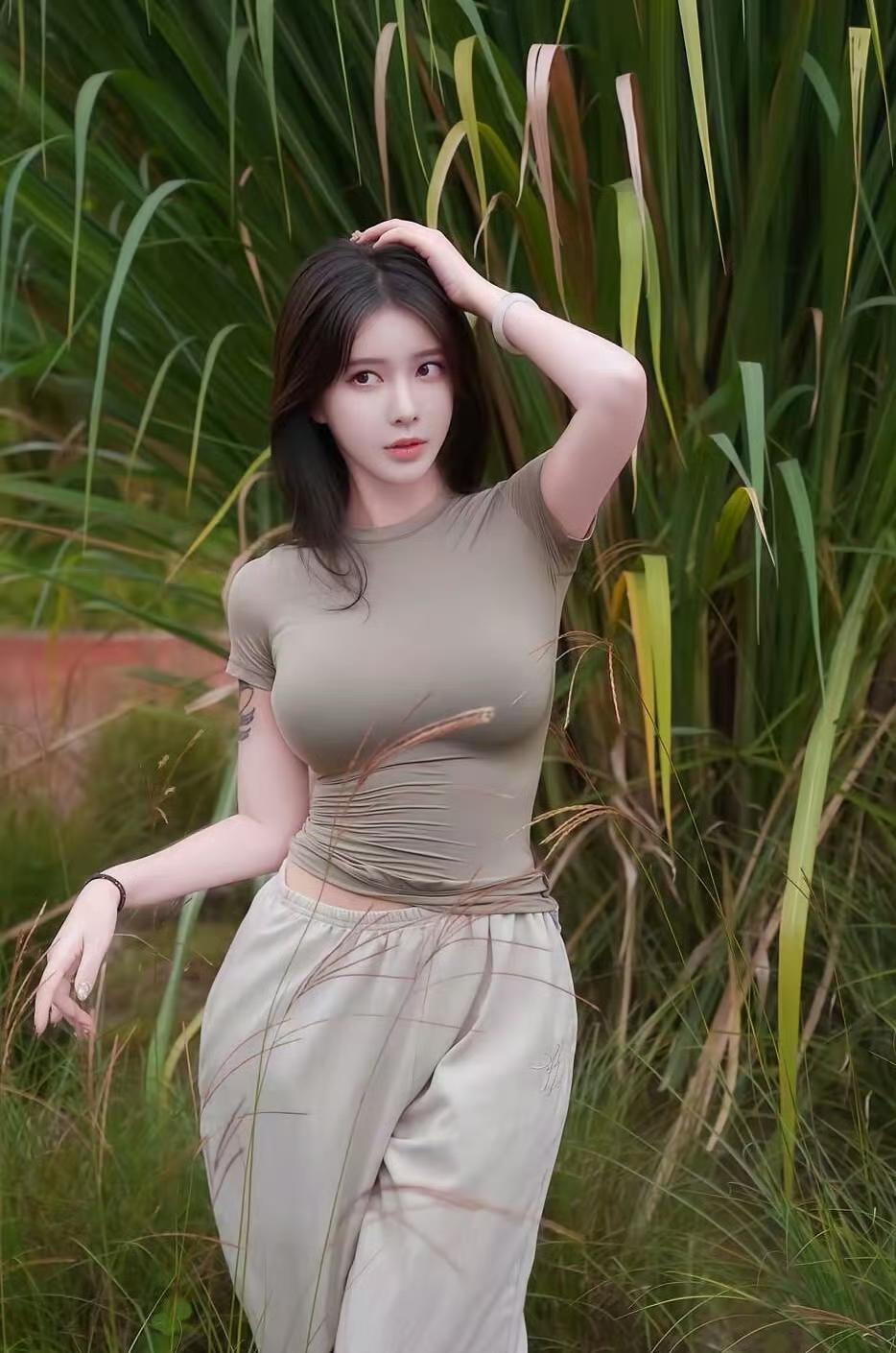 夏日清新穿搭,绿意盎然背景下的时尚少女!