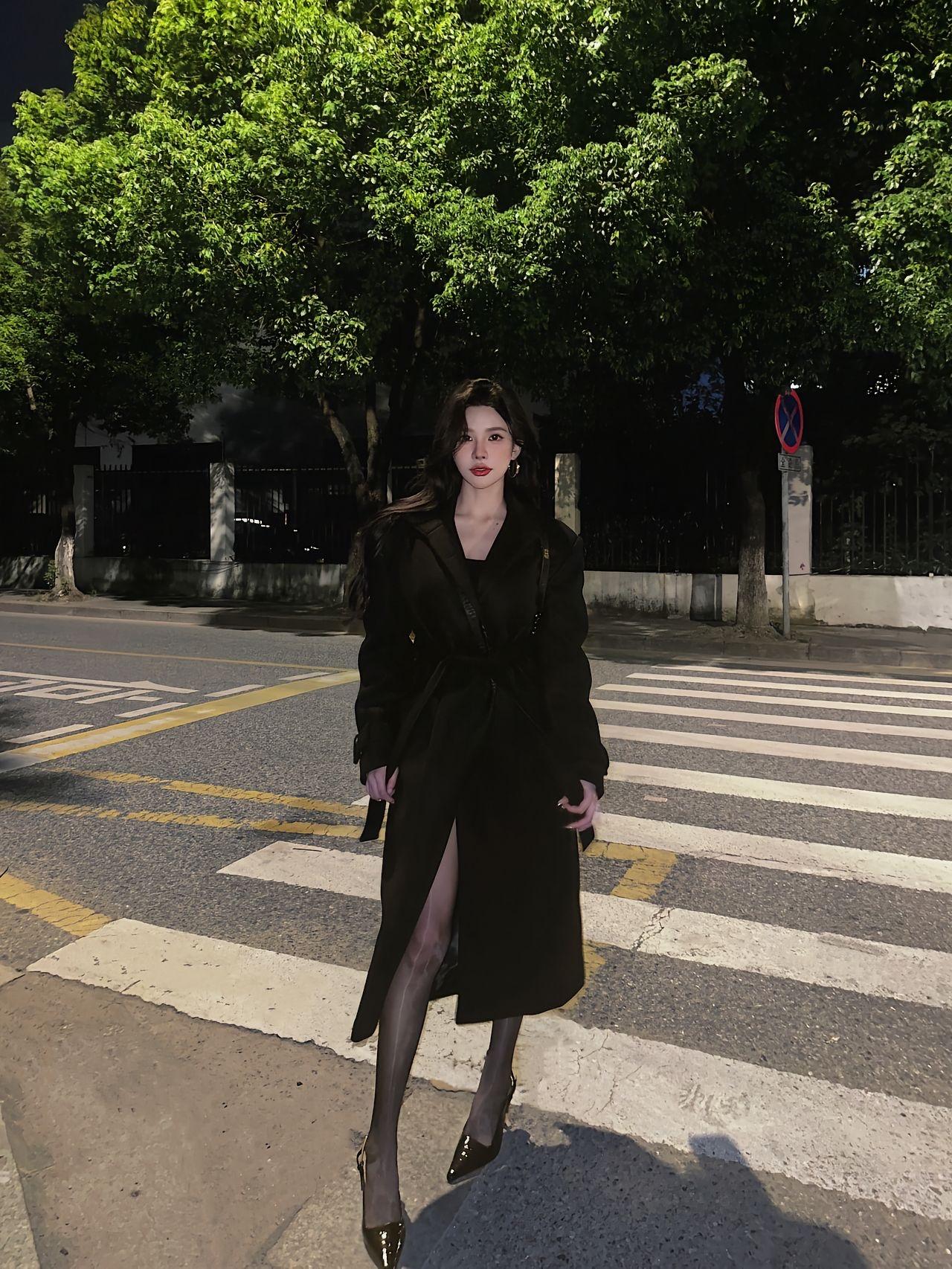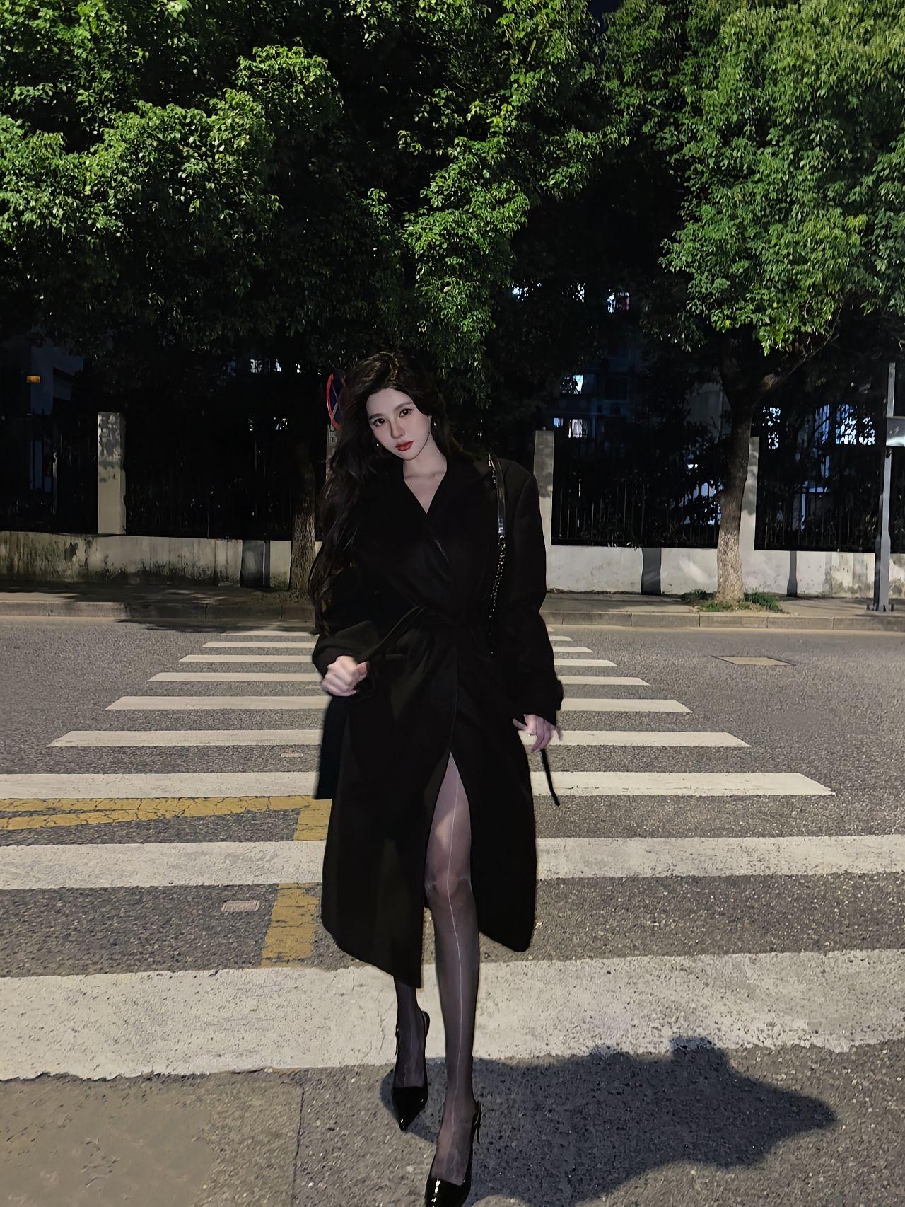 街头“风衣御姐”:这腿长+穿搭,美到挪不开眼! 深夜斑马线偶遇的黑系姐姐,直接把“御姐氛围感”焊在身上! oversize黑大衣系上腰带,掐出腰肢的同时,开叉裙摆露一截薄透黑丝,配上漆皮尖头高跟——腿长直接飙到“屏幕装不下”,每一步都踩在审美点上! 慵懒卷发衬着冷艳红唇,深夜街景的明暗对比,把“又飒又欲”的气质拉满。这种“随手拍都是大片”的穿搭,堪称秋日御姐教科书,姐姐的腿不是腿,是街头行走的绝色杀器! 谁看了不说句“姐姐鲨疯了”? 气质穿搭御姐风 风衣高跟鞋穿搭