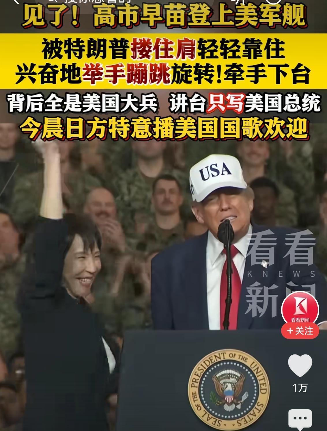 从图片可以看出,日本仍在对美国膜拜,美国仍对日本有着无与伦比的控制力。 特朗普访日,日首相高市早苗全程用十分崇拜的眼神,看着特朗普,特别是在特朗普视察美国战舰时,搂住高市早苗,高市早苗无比兴奋,两人亲密无比。 特朗普说美日两国是不打不相识,言外之意,美国直接打服了日本,高市笑得无比灿烂,好象败在美国手里并不丢人。 这说明,美国对日本的影响力仍十分强大,日本不服别人,唯独服美国。