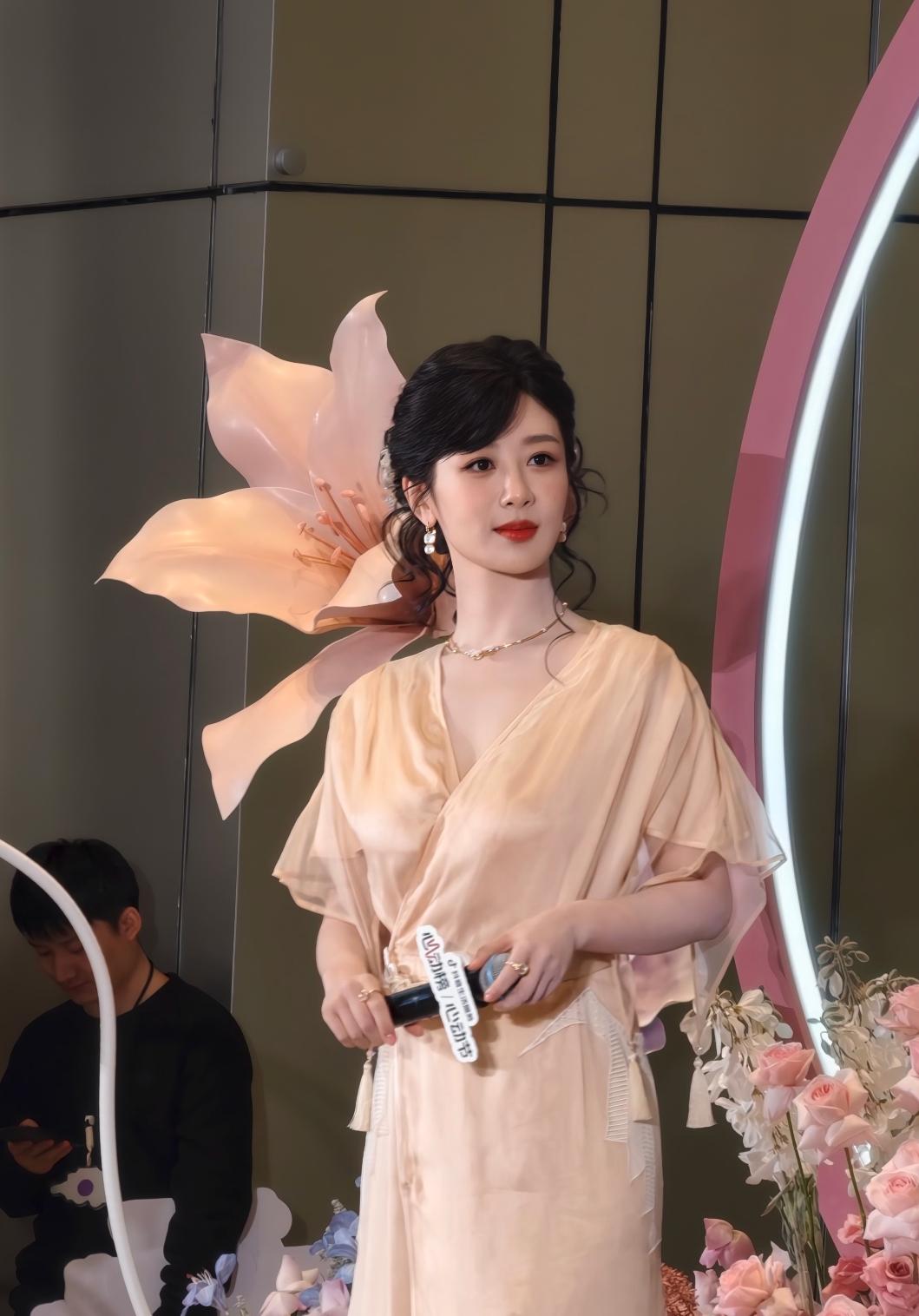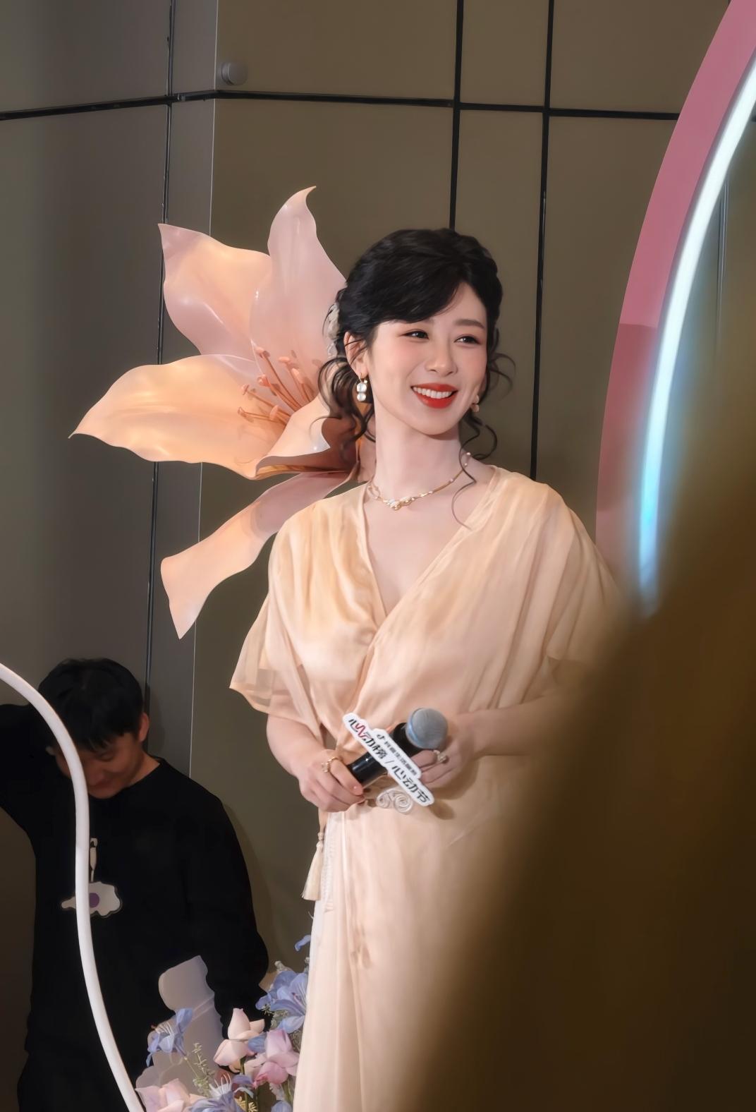 逛国贸撞见杨紫啦!谁懂啊,小时候看《家有儿女》里那个扎马尾的夏雪,现在往那儿一站,又温婉又大气——浅杏色裙子衬得整个人柔柔的,头发盘得松松垮垮带点卷,又甜又有女人味。 她就拿着话筒站在那儿,笑起来还是有点小时候的灵气,但气质早不是小孩儿样了,是那种舒服的成熟感,像把“温柔大方”四个字穿在了身上。 现场氛围特好,她安安静静听主持人说话的样子,真的越看越顺眼!