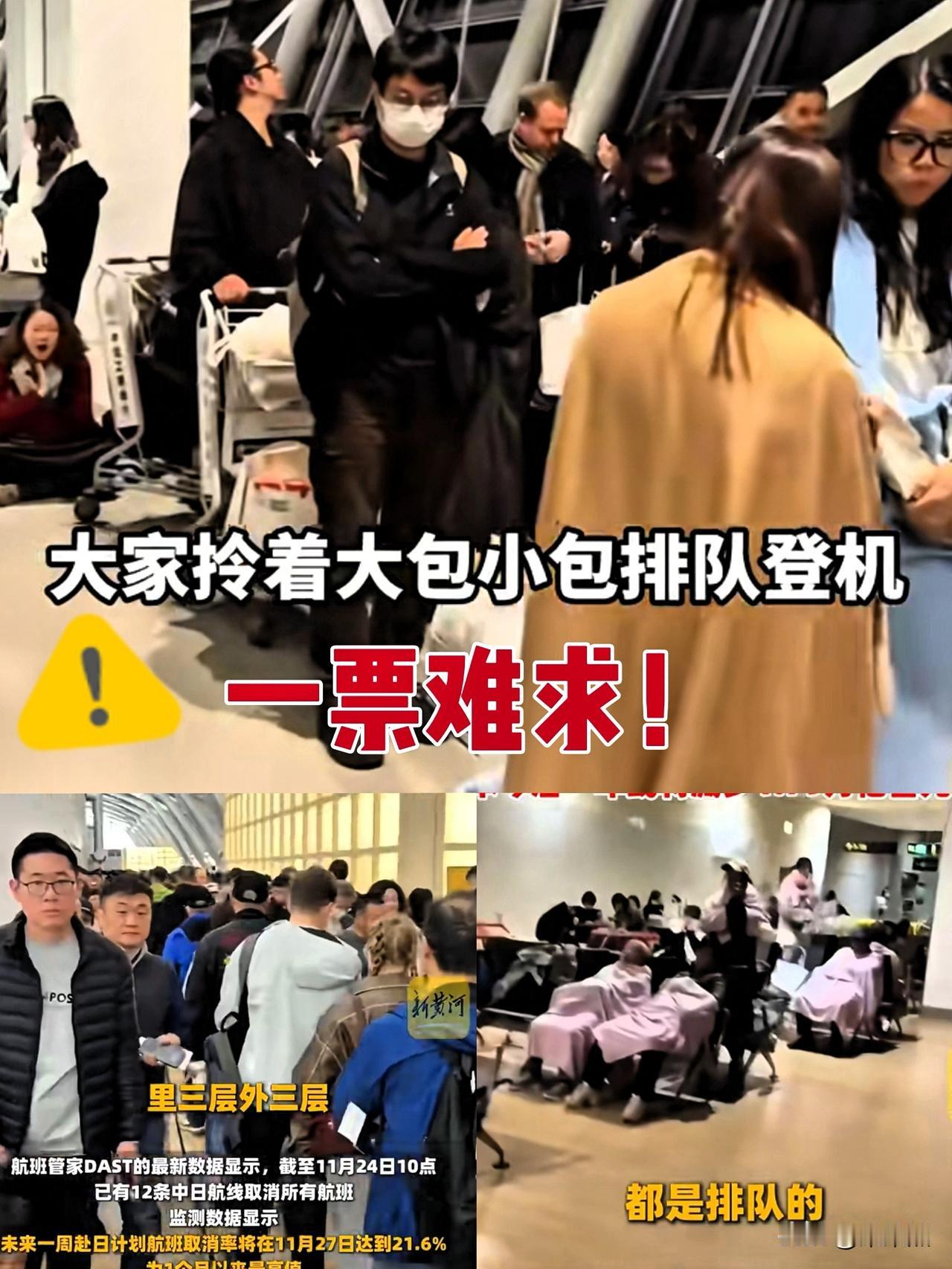 对不起, 我真的无法同情 那些滞留在小日子的我国游客。 官方是不是提醒了?非撞了南墙才知道回头? 有网友辣评,听到这个消息就放心了,让他们呆在自己喜欢的地方吧! 最近有不少我国游客滞留在小日子,不少人当初无视外交部、文旅部发布的“非必要暂勿前往日本”安全提醒,执意赴日出行,如今正面临返程难题。 有网友调侃,做完经济贡献,知道回来了?回程票必须上涨几倍,毕竟去玩的都是有钱人,不在乎那三瓜俩枣。 受小日子不当言论引发的双边关系变化、12条中日航线集中取消(天津至关西、南京至关西等航线取消率超50%)、航司运力缩减等影响,大量游客集中返程导致小日子成田、关西等机场陷入混乱。 值机安检排起长龙,部分航班经济舱票价暴涨,商务舱更是一票难求,不少滞留游客只能在机场地板上临时休息,归国之路格外艰难。 甚至11月25日关西机场还发生了一名滞留的我国年轻游客坠落身亡的悲剧。 有个朋友说,她儿子没有去,儿媳妇也没有去,偏偏孙子去了小日子,这还回不来了。 这次事件也给大家提了个醒,跨境出行应优先关注官方安全提示,把自身安全和相关风险放在首位。 目前国内多家航司已推出涉日航班特殊退改政策,驻日使领馆也开通24小时领事保护热线协助滞留旅客,返程通道仍在畅通,希望滞留游客能顺利回国。 以后国人出境旅游,不能只自己图个乐,还要想一下身份认同,得多看看对方是不是尊重文化和社会才行。 滞留愁断肠,满眼思故乡!大家说是不是?欢迎评论区留言。你会选择在近期前往日本旅游吗
