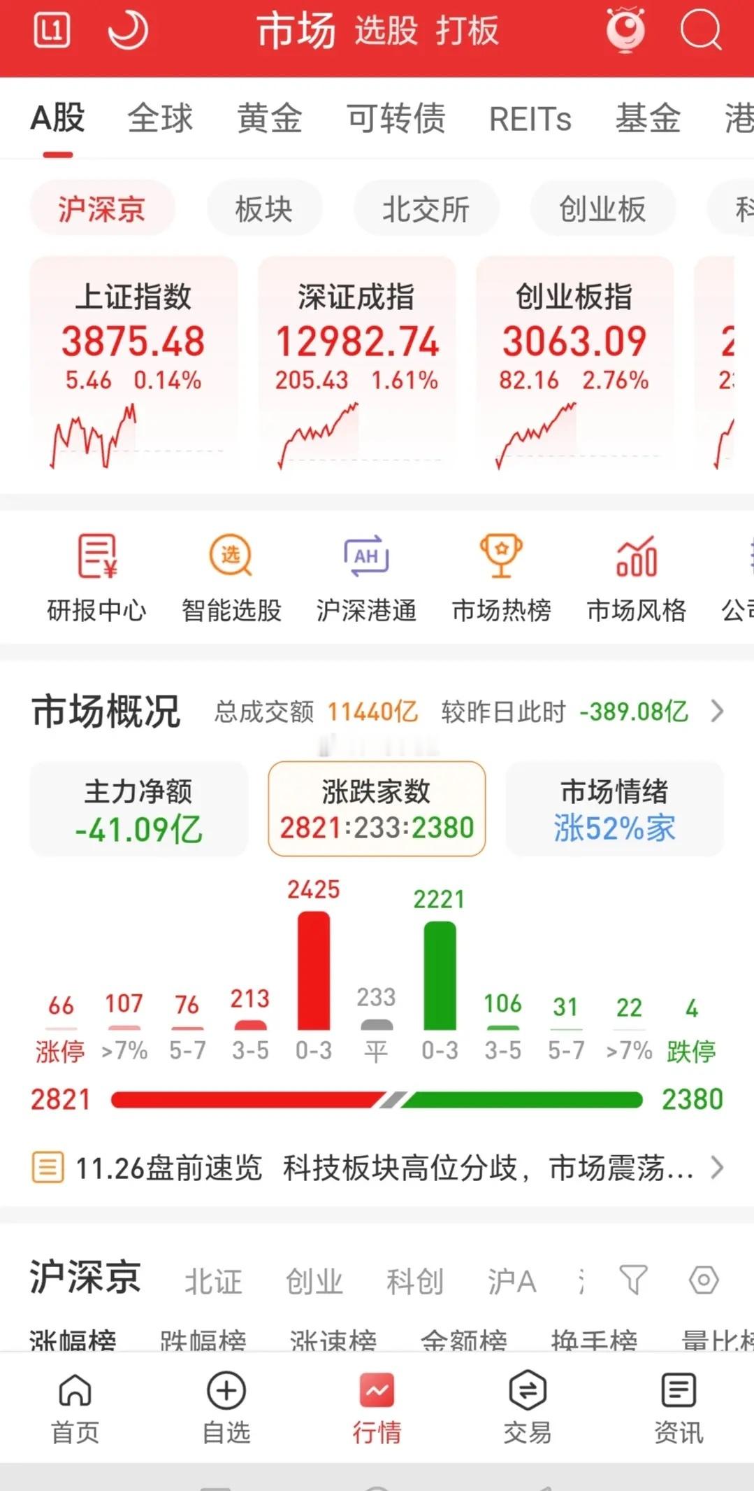 早盘三大指数低开高走,收阳,市场涨多跌少,缩量近400亿,涨跌比7:6,市场情绪中性乐观!盘面上,沪弱深强,最多缩量近700亿,也就是有少量资金进场开启做多模式。沪市是震荡攀升,深市单边上涨,为啥?因为深市日线调整基本到位,沪市还早的很,所以沪市接下来会弱于深市,因为沪市要震荡磨底,深市要反弹!持股待涨就行!