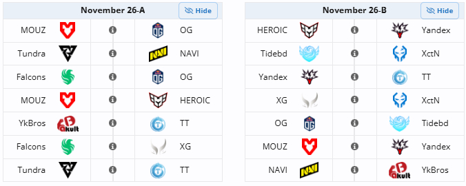 今晚将继续进行Blast成都站小组赛,XG和FLCN将上演TI决赛后的首度对决,不过感觉以XG目前的磨合情况及选手状态应该是不太能够挑战绿鹰的,输了这场算是情有可原但对阵XCTN的bo1无论如何都要拿下,除XG外另外三支中国队也将全员登场,今天对手相对来说不算特别难打所以需要尽量多多拿分,希望大家都加油23:00 Tidebound vs XctN00:00 TT vs Yandex01:00 XG vs XctN02:00 YB vs TT02:00 Tidebound vs OG03:00 XG vs Falcons04:00 TT vs Tundra04:00 YB vs Navi