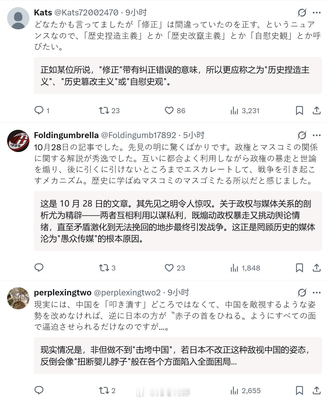 一些日本人对当下高市早苗政府的言行,以及对日本社会历史修正主义思潮的反思日本的战争准备正全面铺开海外新鲜事