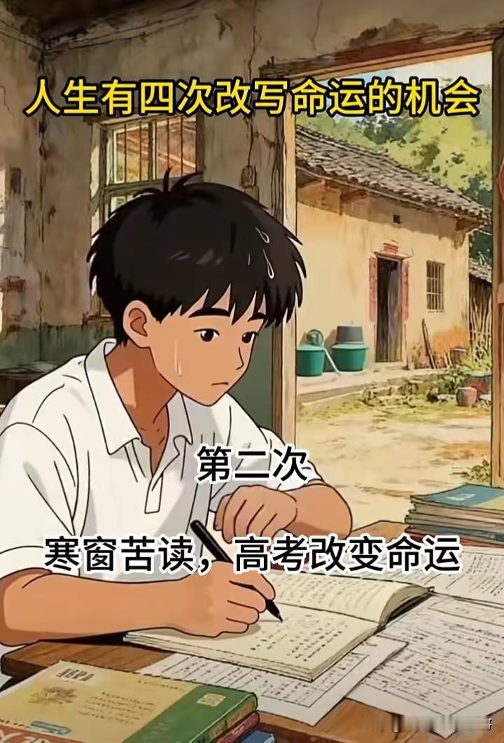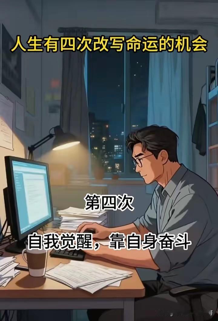 人这一辈子能改变自己命运的,仅仅有四次比较明显的机会,就看你能不能抓住了,有些是我们客观上没有办法控制的,比方说像出生家庭,但是有些是我们可以通过自己的努力去争取的去干预的,比方说像高考,比方说像考研,考博,比方说选择自己的爱人,还有一些是我们经历了一系列的人情冷暖,酸甜苦辣,自己开始逐步觉醒,开始发疯一样的努力,那可是最后一次了。 如果在出生,高考,婚姻,自我觉醒这四方面,你能够哪怕做到一条两条,能够把握住一次两次,你的人生绝对跟别人不同!