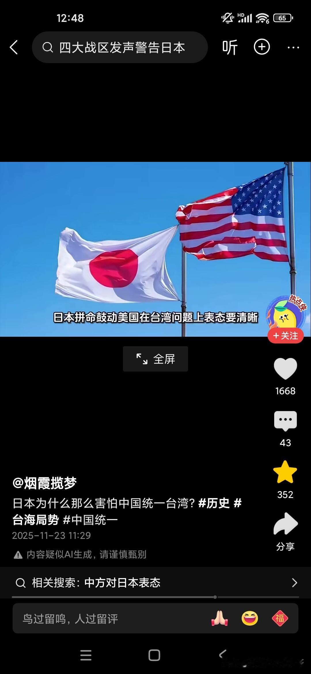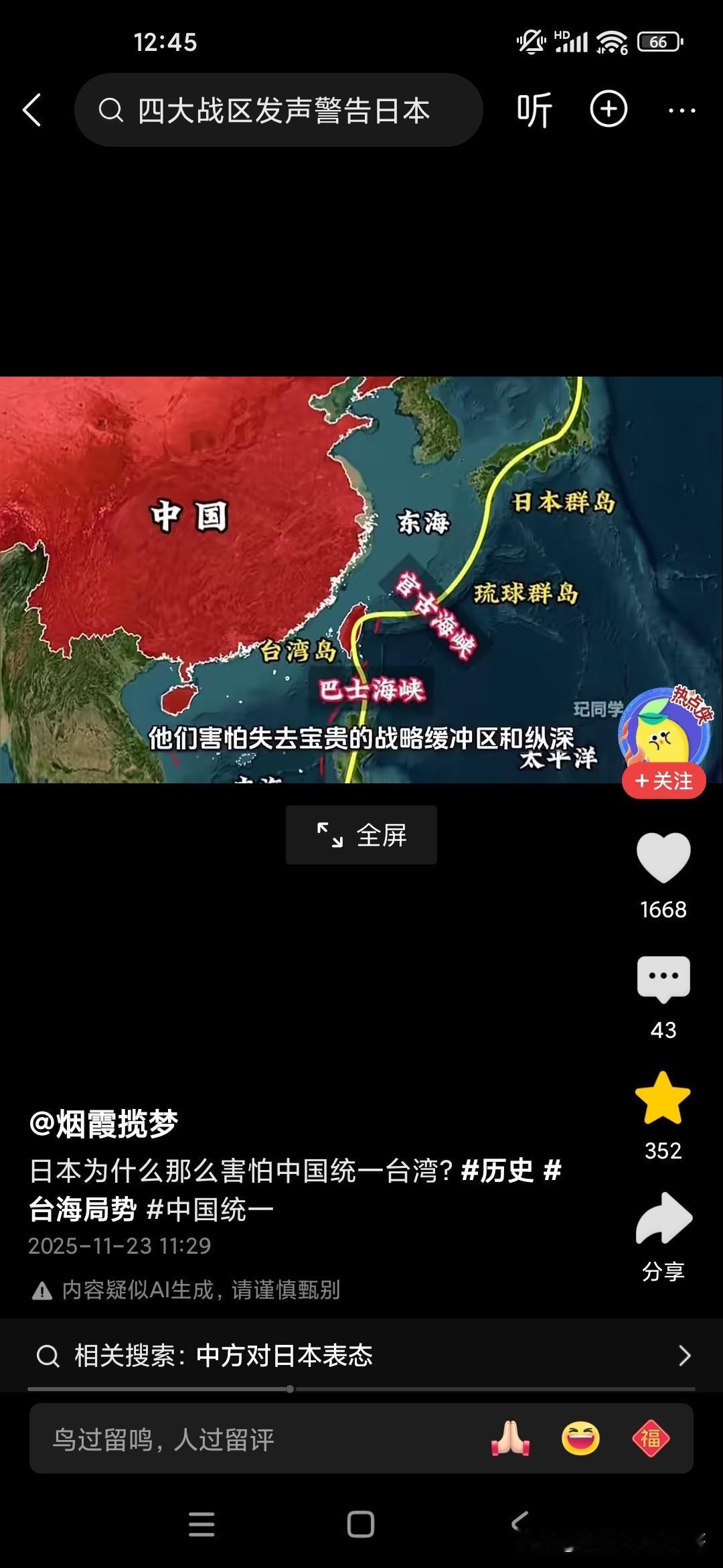 日本为什么这么害怕台湾回归我们祖国呢?是因为台湾的地理位置太重要了,日本是一个严重依靠外来进口和资源的国家,很多从波斯湾,中东,或者是从欧洲运过来的石油,天然气或者是其他的战略物资,除了经过马六甲海峡,还有经过台湾海峡或者经过台湾以东的海峡,台湾省正好处于他它的咽喉地位,那之前的话是因为台湾没有回归,他可以为所欲为,在台湾培养亲日的力量,但现在台湾要回归祖国了,他感觉我们掐住了他们的命门,命运可能就要被我们卡住了,所以他们于心不甘,所以说他们的首相才会说关系到日本的生死存亡,我们也是我们中华民族的未来考虑呀,为了我们的子孙后代能够走出太平洋啊!