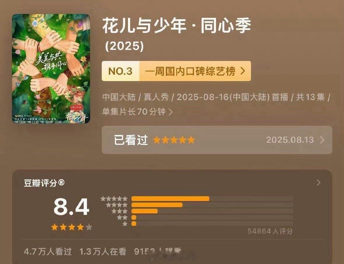 花儿与少年7评分涨到8.4了 哈哈哈哈哈就是说七老童心再不合体,就说不过去了吧,《花儿与少年7》的豆瓣评分涨到8.4了,看得出来观众对七老童心的宠爱啦,龚俊、张晚意、那英、马思纯、李沁、陈树、张雅琪,导演组太有眼光啦花儿与少年7豆瓣评分8.4