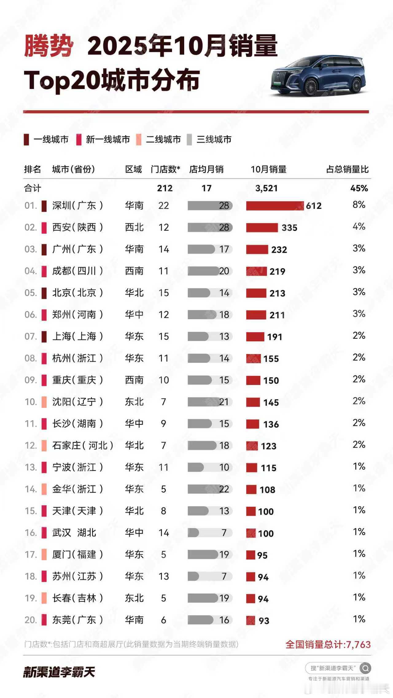 【腾势25年10月销量TOP20城】总部深圳销量最好,占比8%店效方面西安最强大v聊车腾势汽车腾势d9