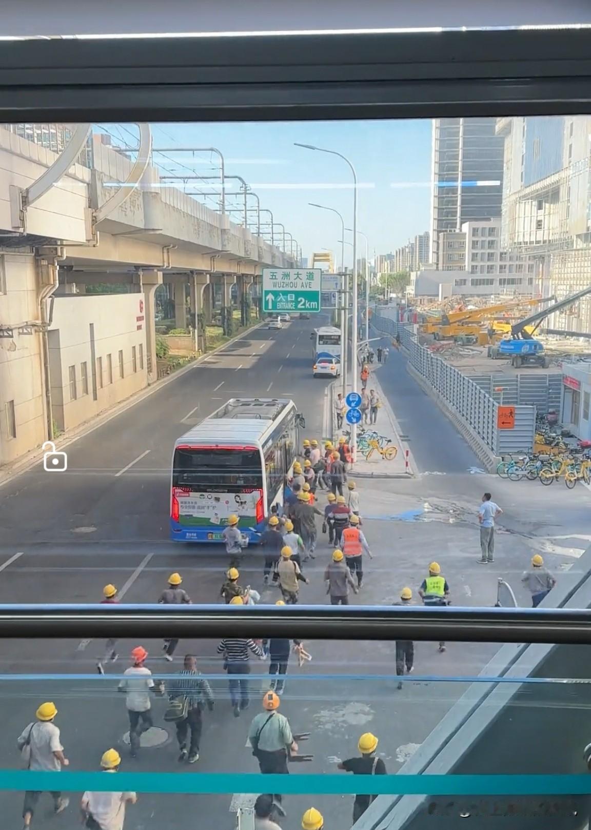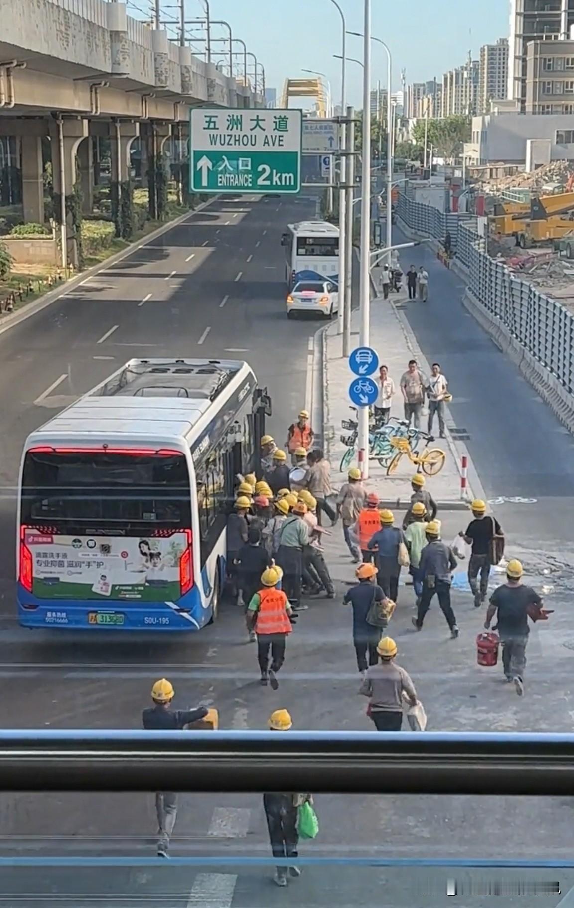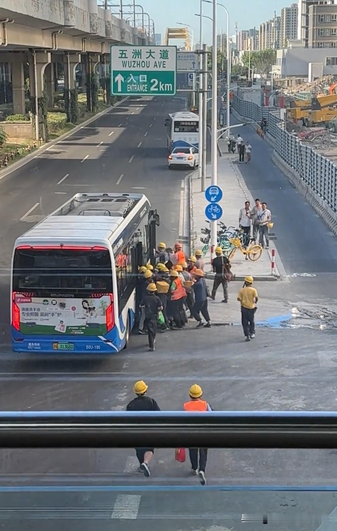 上海的街头,挤公交的工人。 看到这真实的一幕,你有什么想法! 这一幕里,是城市建设者们从工地退场、一头扎进生活烟火的瞬间,灰扑扑的工装和鲜亮的安全帽,在车流和楼群间,成了最踏实的底色。 都在为生活奔泊… 公交站见闻 公交挤公交